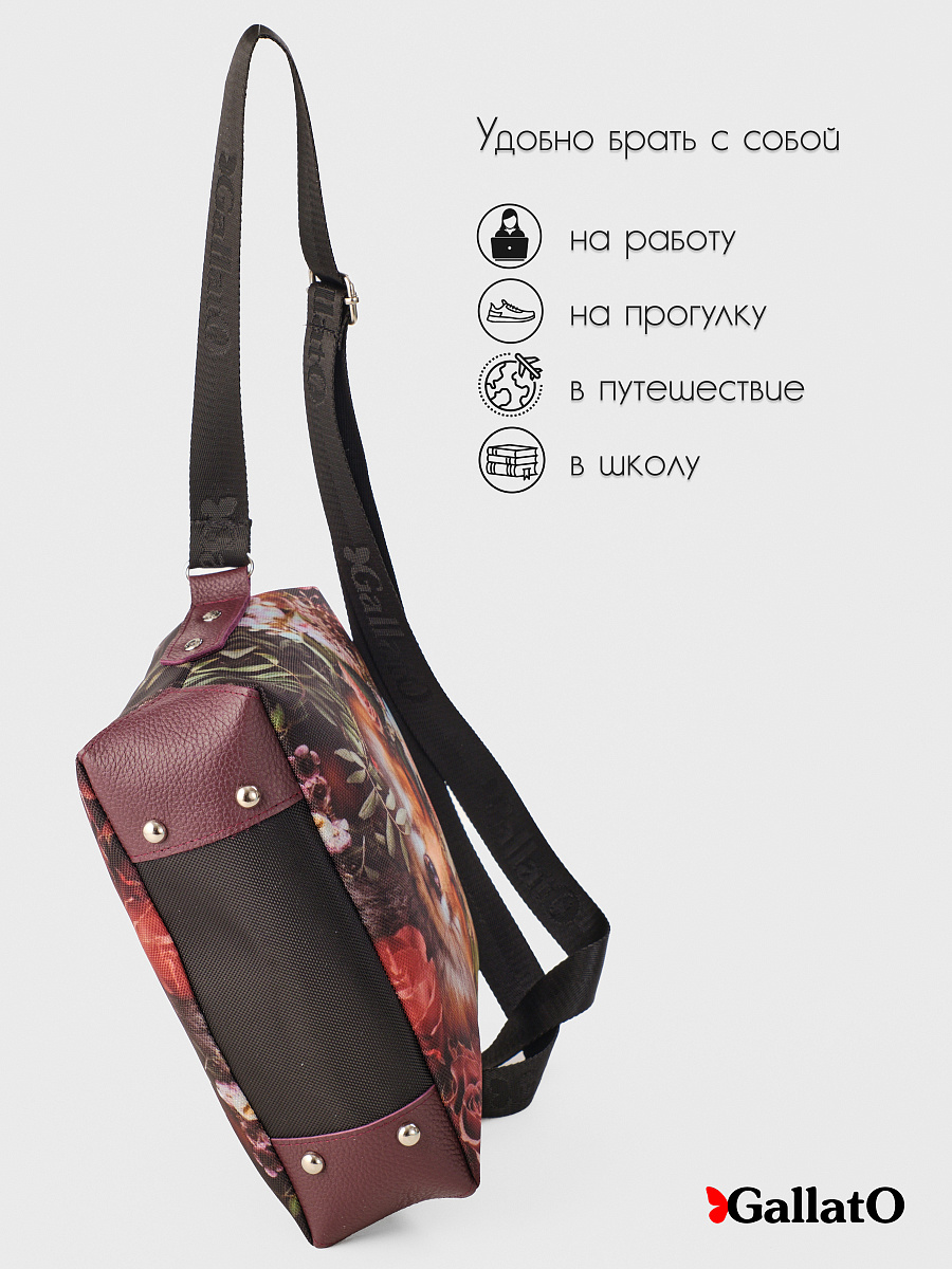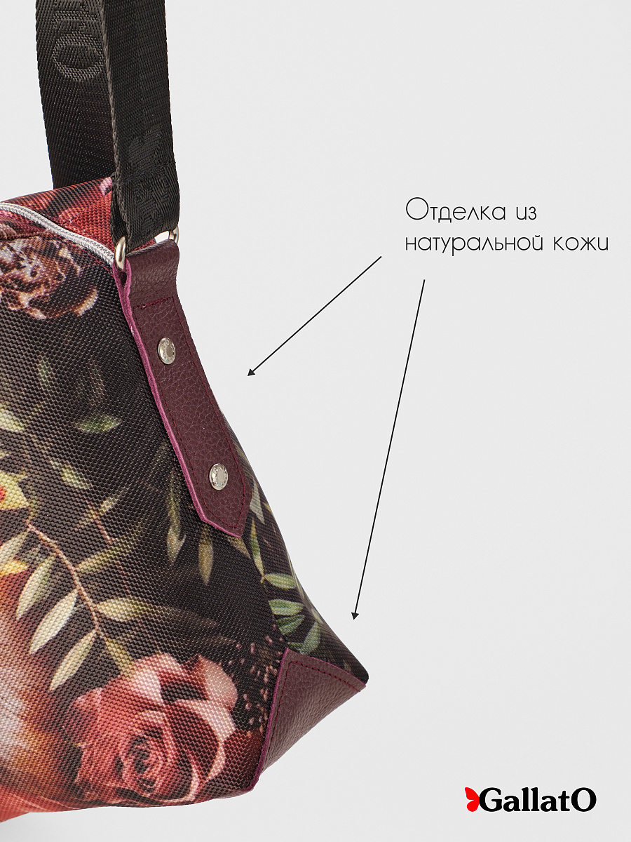 Современная, удобная, сумка выполнена из текстиля с отделкой из натуральной кожи, усилена холнитенами, внутри сумки есть 2 кармана для мелочей, один большой карман закрывающийся на молнию. Легкая, проста в уходе. Сумки торговой марки Gallato сделаны из армированного нейлона с водоотталкивающей полиуретановой пропиткой.