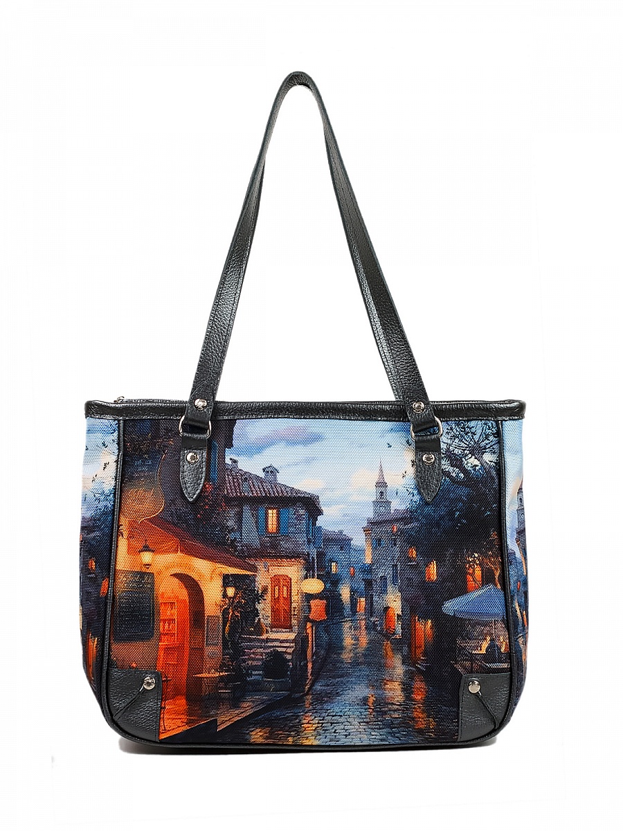 Современная, удобная, сумка выполнена из текстиля, с ручками и отделкой из натуральной кожи, внутри сумки есть 2 открытых кармана для мелочей и один на молнии, легкая, проста в уходе. В сумку входят документы формата А4. Подходит для ношения на плече.