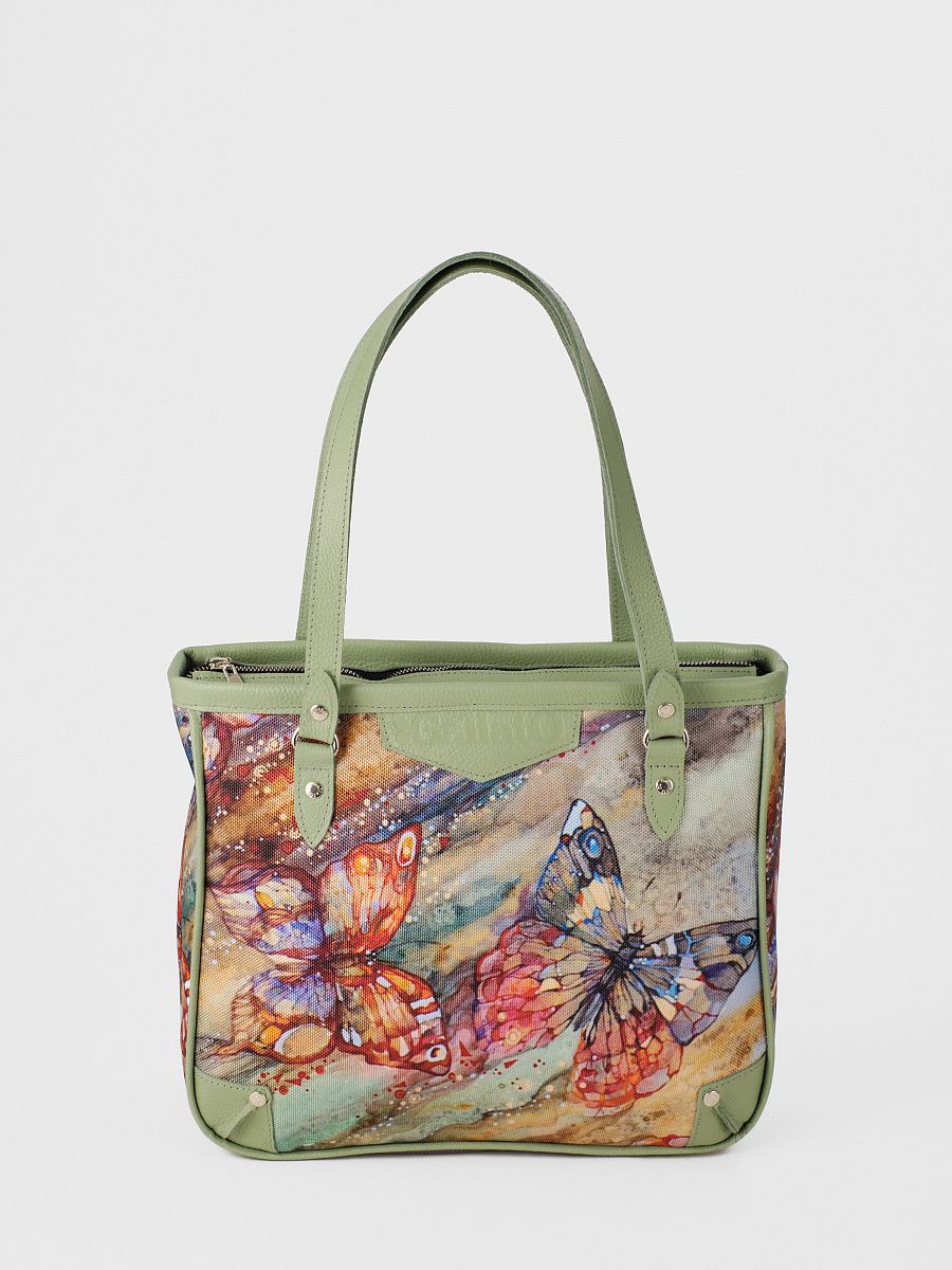 Современная, удобная, сумка выполнена из текстиля, с ручками и отделкой из натуральной кожи, внутри сумки есть 2 открытых кармана для мелочей и один на молнии, легкая, проста в уходе. В сумку входят документы формата А4. Подходит для ношения на плече.