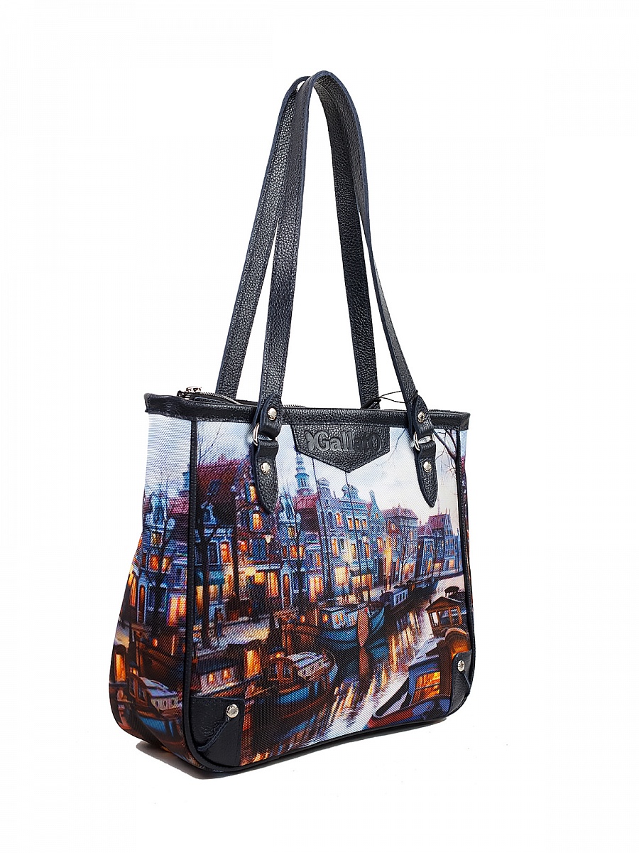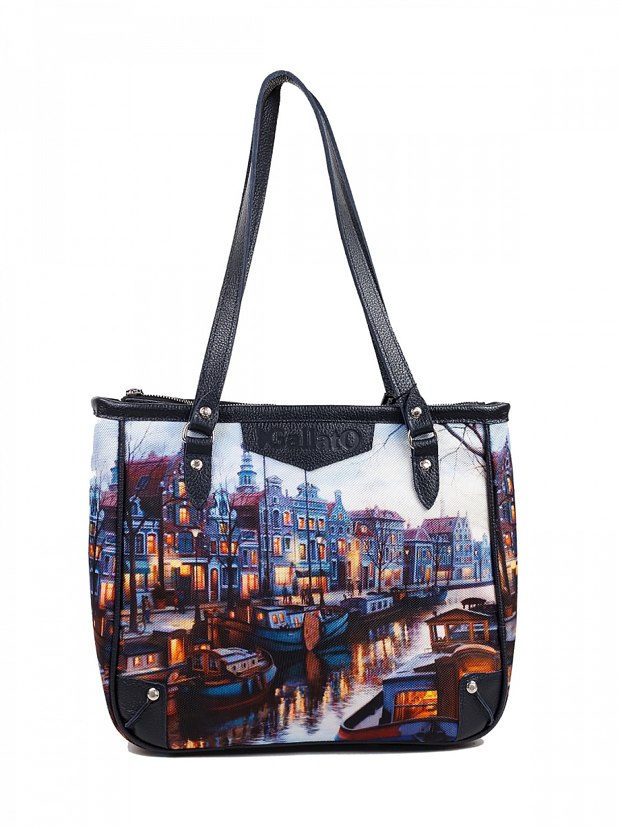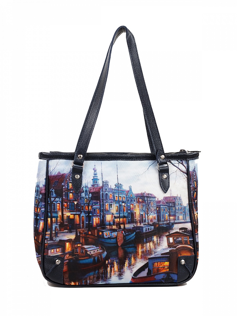 Современная, удобная, сумка выполнена из текстиля, с ручками и отделкой из натуральной кожи, внутри сумки есть 2 открытых кармана для мелочей и один на молнии, легкая, проста в уходе. В сумку входят документы формата А4. Подходит для ношения на плече.