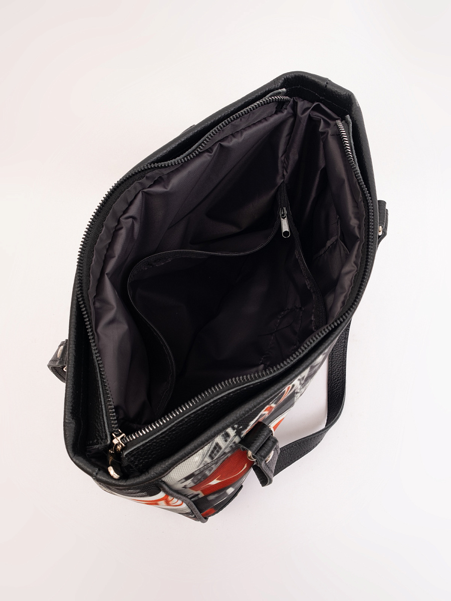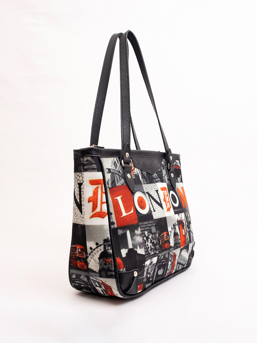 Современная, удобная, сумка выполнена из текстиля, с ручками и отделкой из натуральной кожи, внутри сумки есть 2 открытых кармана для мелочей и один на молнии, легкая, проста в уходе. В сумку входят документы формата А4. Подходит для ношения на плече.