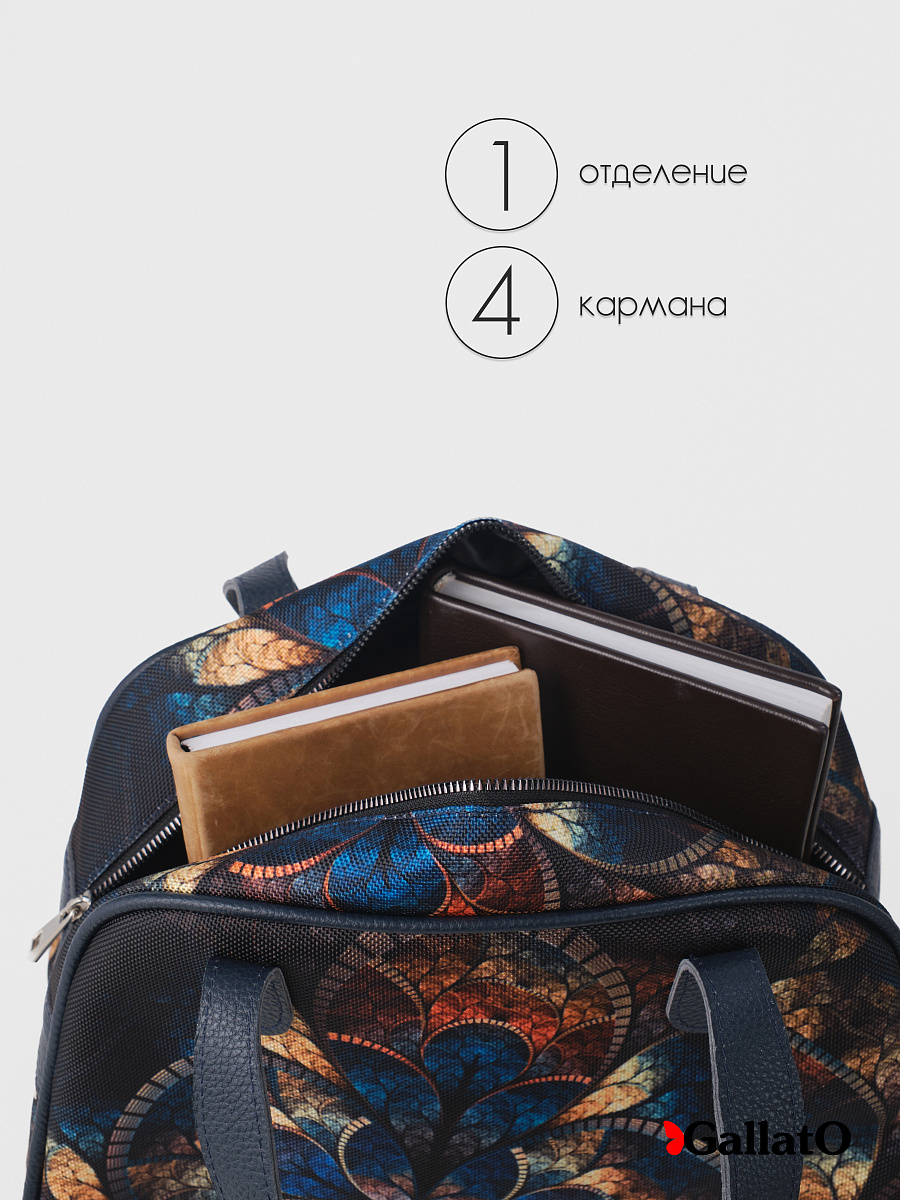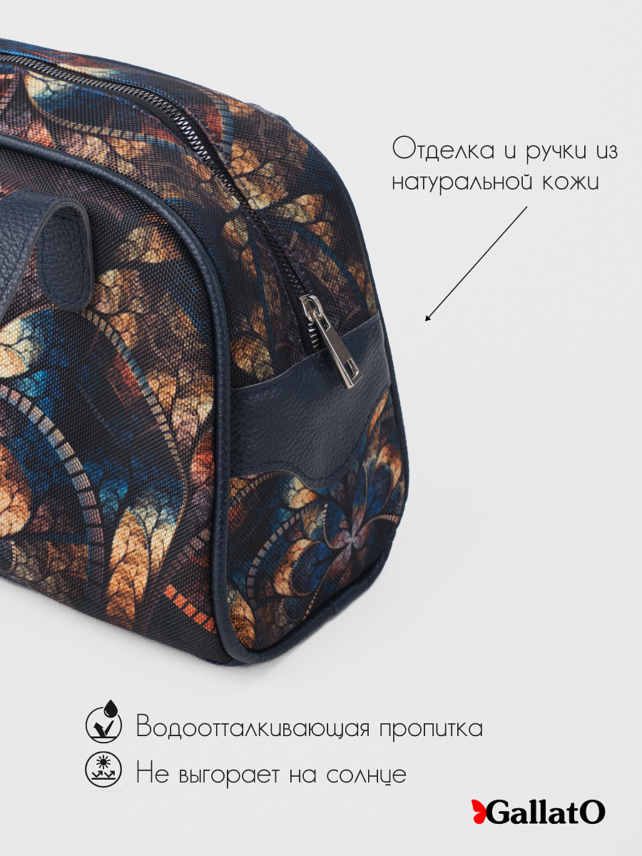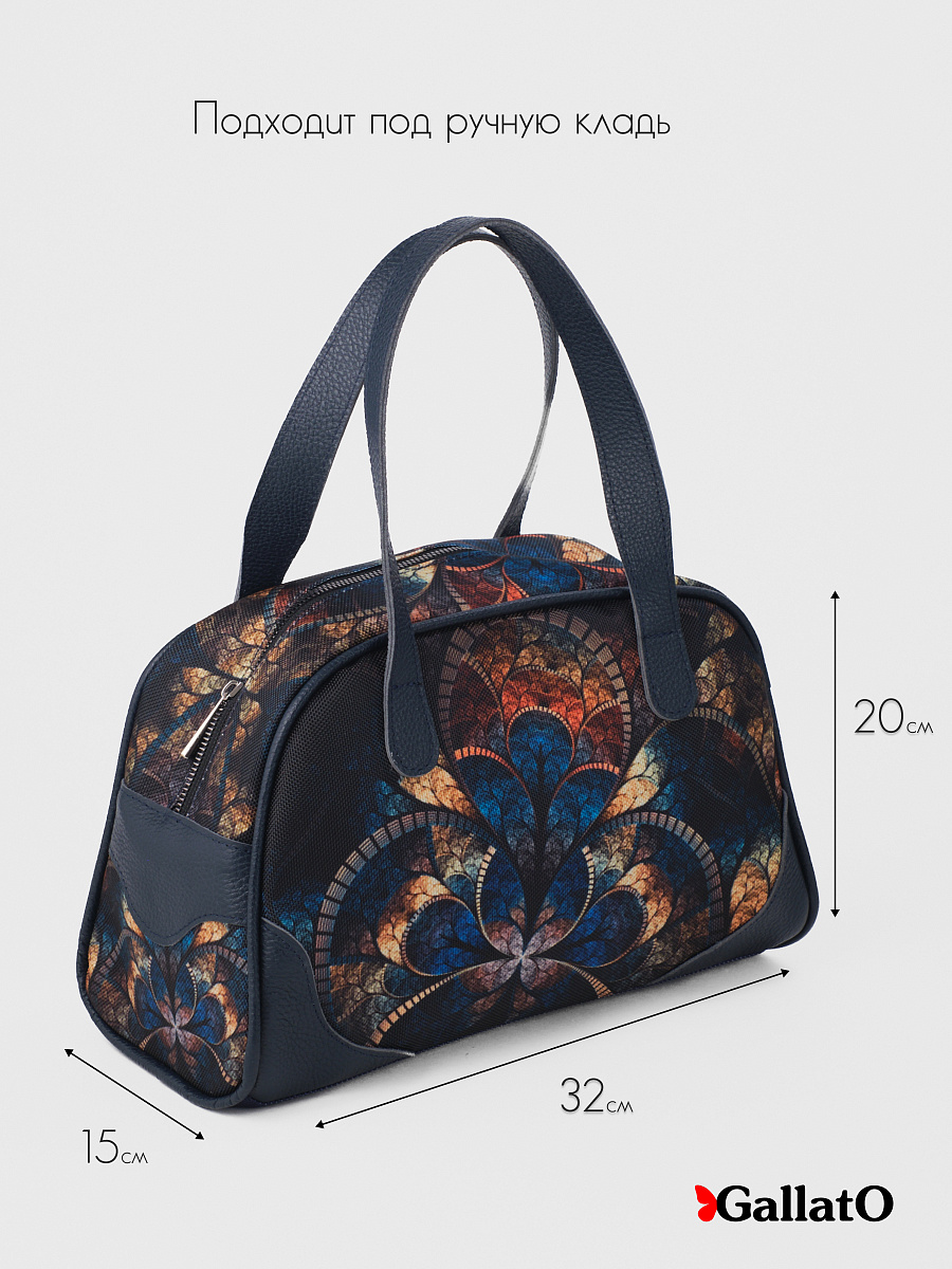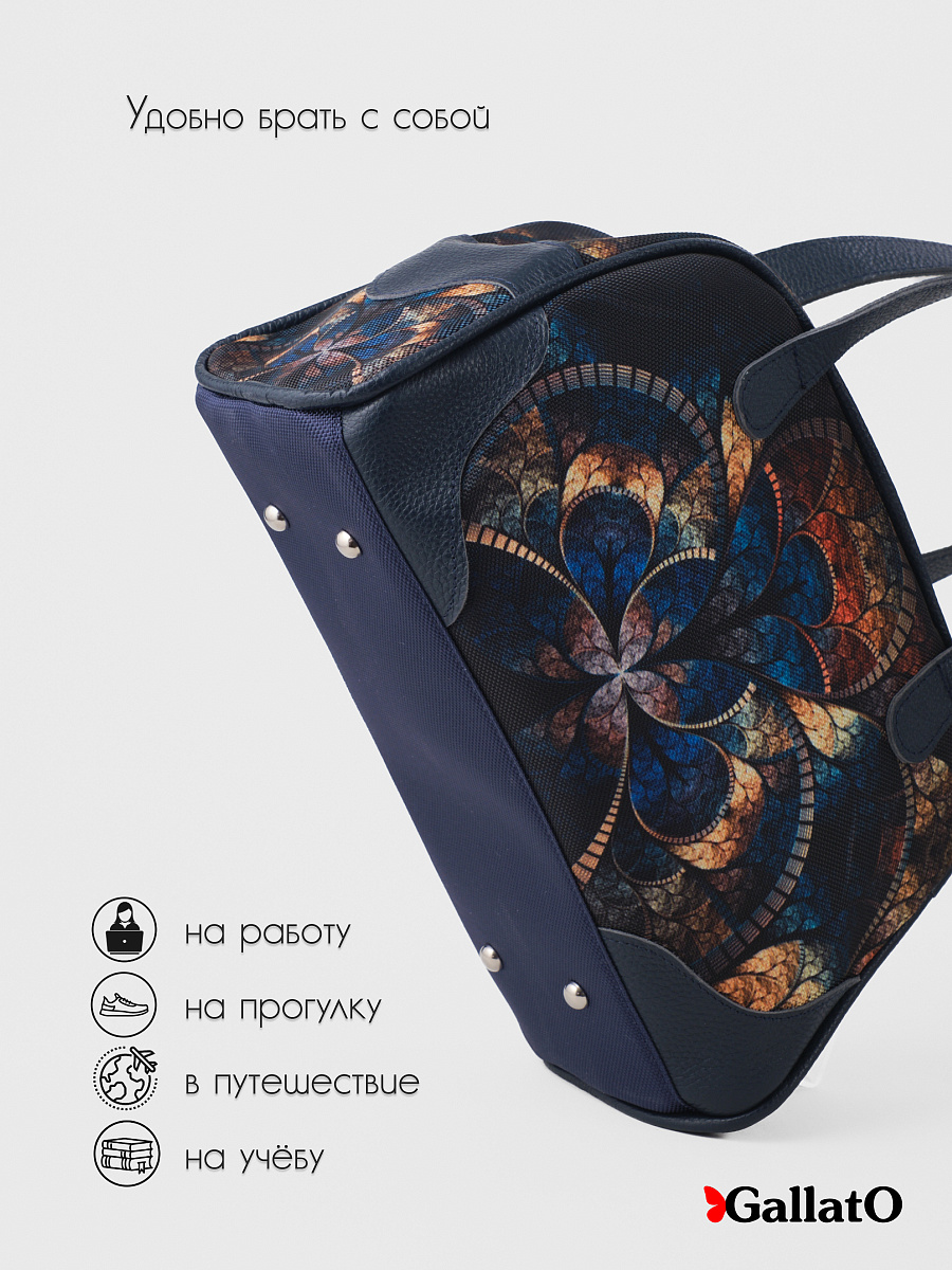 Современная, удобная, сумка выполнена из текстиля, с ручками и отделкой из натуральной кожи, внутри сумки есть 2 открытых кармана формата А6 и один на молнии. Легкая, проста в уходе. Ткань не линяет. Сумки торговой марки Gallato сделаны из армированного нейлона с водоотталкивающей полиуретановой пропиткой.