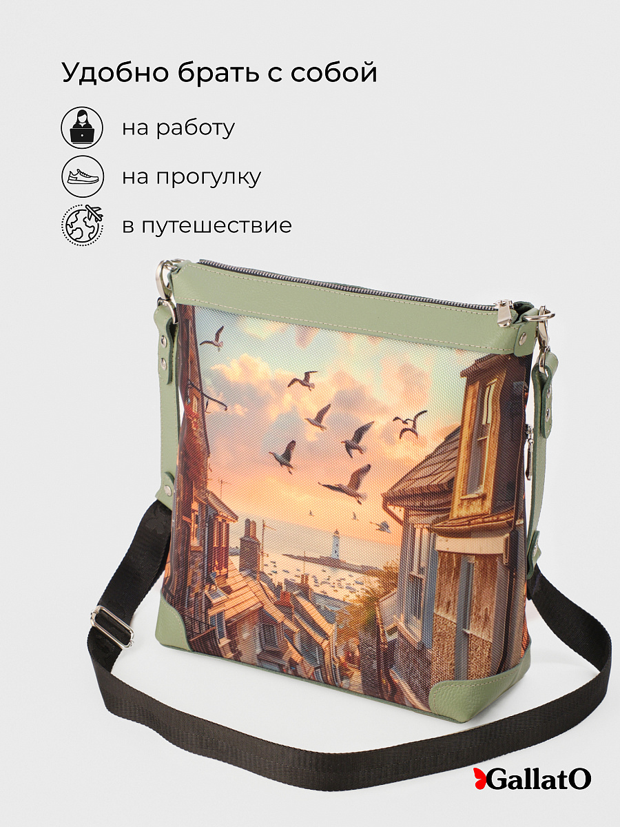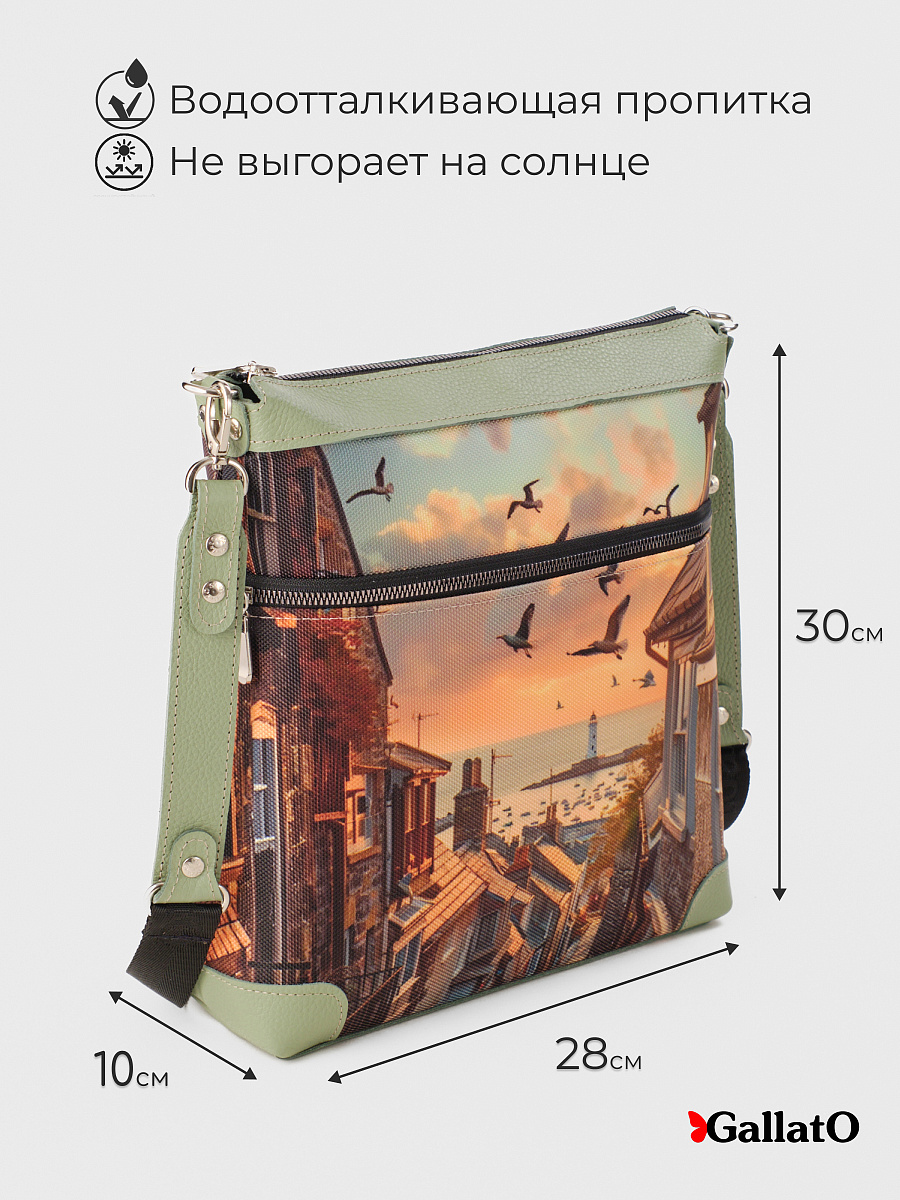 Женская сумка JULIA tm GALLATO Оборудованная длинным ремнем 140 см,. Сумку очень удобно носить через плече . Имеет одно большое отделение с карманами для телефона и мелочей. а так же большой наружный карман под молнию. Не заменимая вещь для работы , прогулок ,путешествий, командировок и отдыха. Используемый материал, устойчив к износу, не пропускает влагу и долговечен. Современная, удобная сумка выполнена из текстиля с отделкой из натуральной кожи, усилена холнитенами. Легкая, проста в уходе. длина регулируемого плечевого ремня 140 см. размер сумки 30*28*10 см.