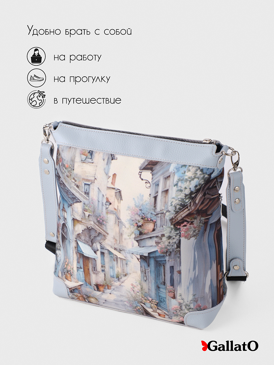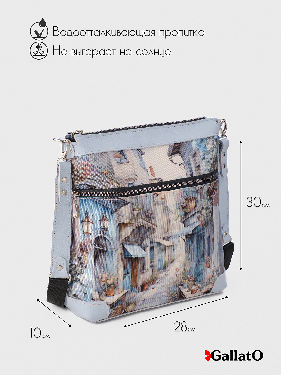 Женская сумка JULIA tm GALLATO Оборудованная длинным ремнем 140 см,. Сумку очень удобно носить через плече . Имеет одно большое отделение с карманами для телефона и мелочей. а так же большой наружный карман под молнию. Не заменимая вещь для работы , прогулок ,путешествий, командировок и отдыха. Используемый материал, устойчив к износу, не пропускает влагу и долговечен. Современная, удобная сумка выполнена из текстиля с отделкой из натуральной кожи, усилена холнитенами. Легкая, проста в уходе. длина регулируемого плечевого ремня 140 см. размер сумки 30*28*10 см.