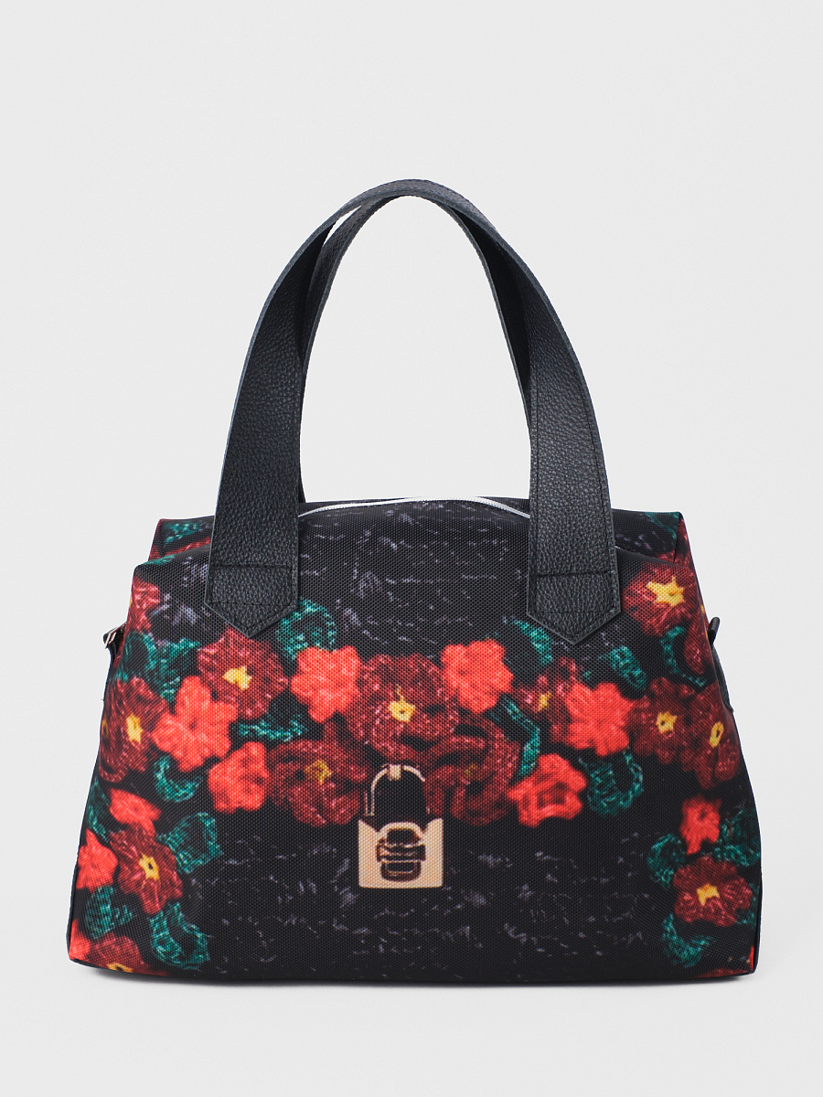 Современная, удобная, сумка  выполнена из текстиля, с ручками и отделкой из натуральной кожи, внутри сумки есть два кармана  формата А6: открытый и на молнии. Так же еще один открытый карман формата А5. Сумочка вместительная легкая, проста в уходе. Ткань не линяет.