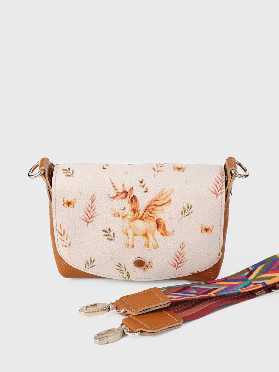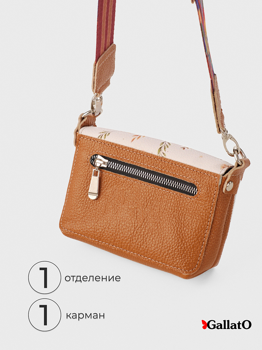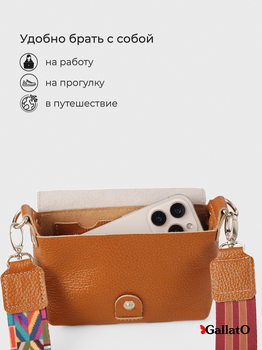 Сумочка, кросс-боди изготовлена из натуральной кожи КРС флоттер, закрывается на кнопку. Внутри одно отделение и два  кармашка для визиток. Снаружи карман закрывается на молнию. Эргономичный аксессуар для путешествий, прогулок в котором удобно носить личные вещи, телефон, ключи, салфетки. Незаменимая вещь при перелетах для хранения дорожных документов. В комплекте регулируемый ремень из цветной стропы длинною 140 см.