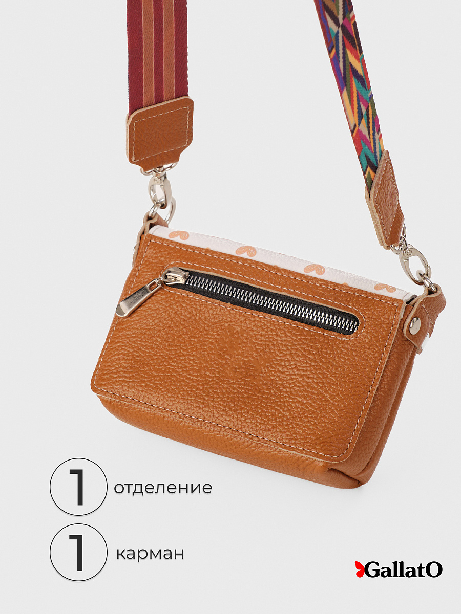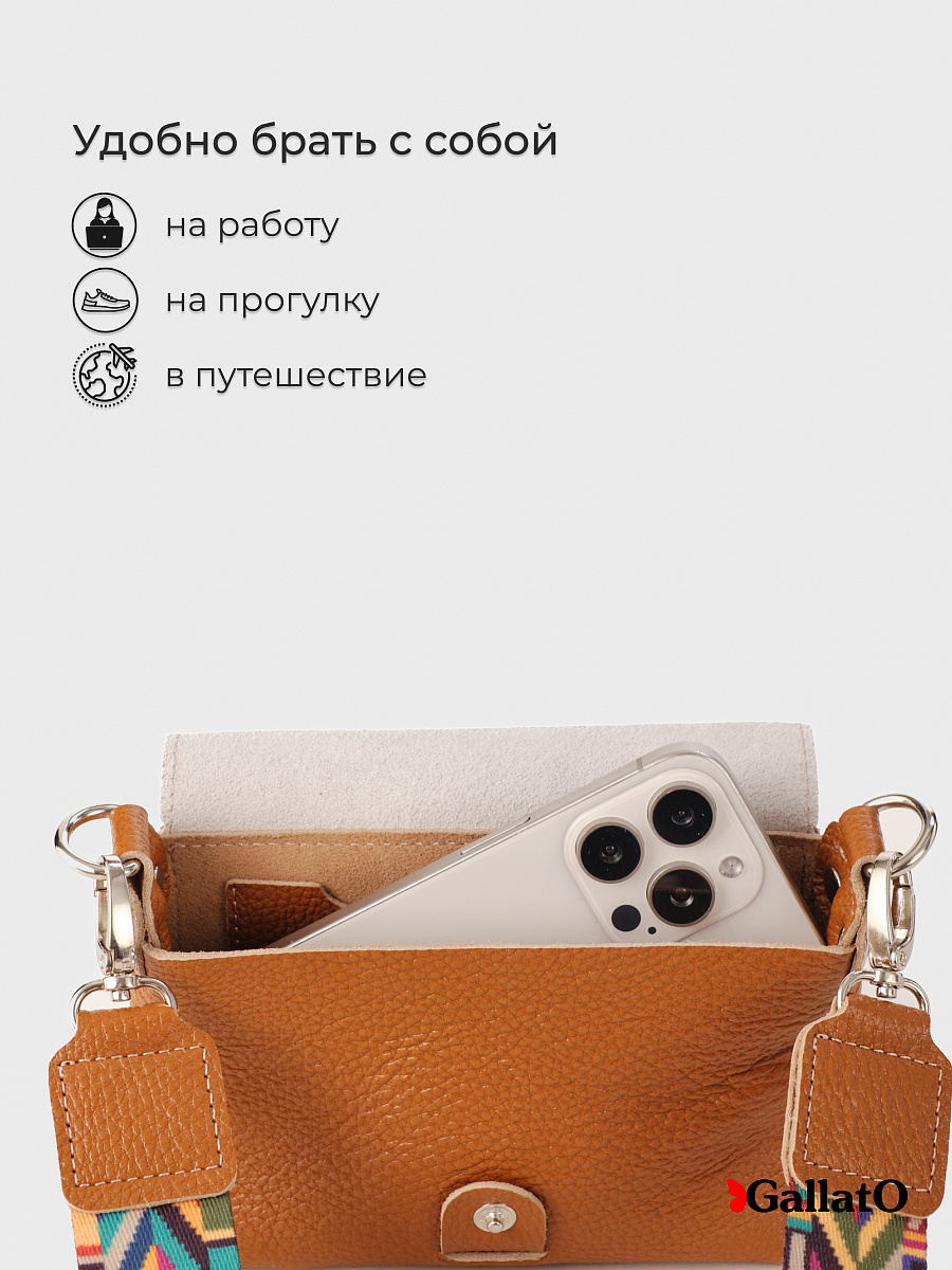 Сумочка, кросс-боди изготовлена из натуральной кожи КРС флоттер, закрывается на кнопку. Внутри одно отделение и два  кармашка для визиток. Снаружи карман закрывается на молнию. Эргономичный аксессуар для путешествий, прогулок в котором удобно носить личные вещи, телефон, ключи, салфетки. Незаменимая вещь при перелетах для хранения дорожных документов. В комплекте регулируемый ремень из цветной стропы длинною 140 см.