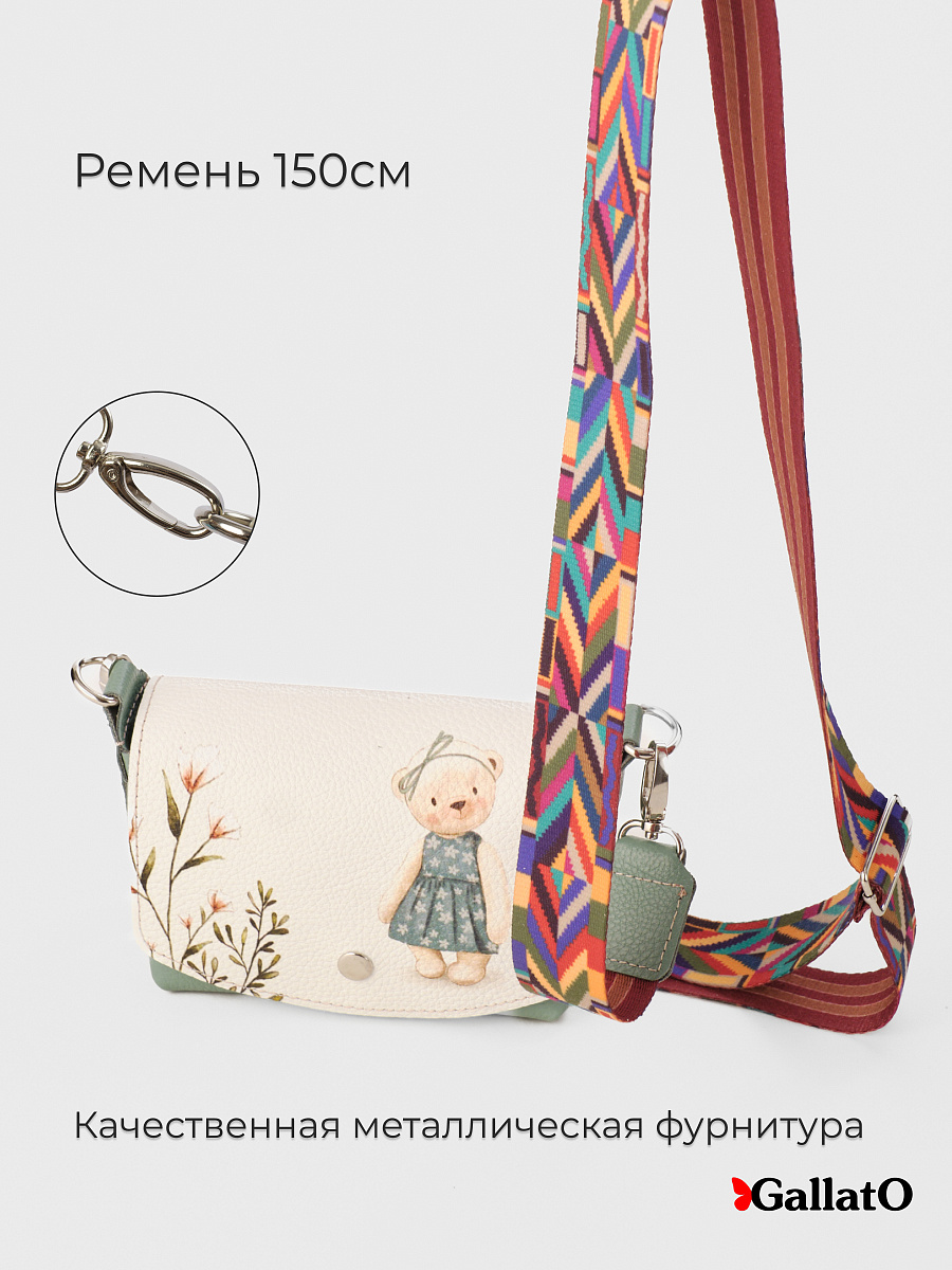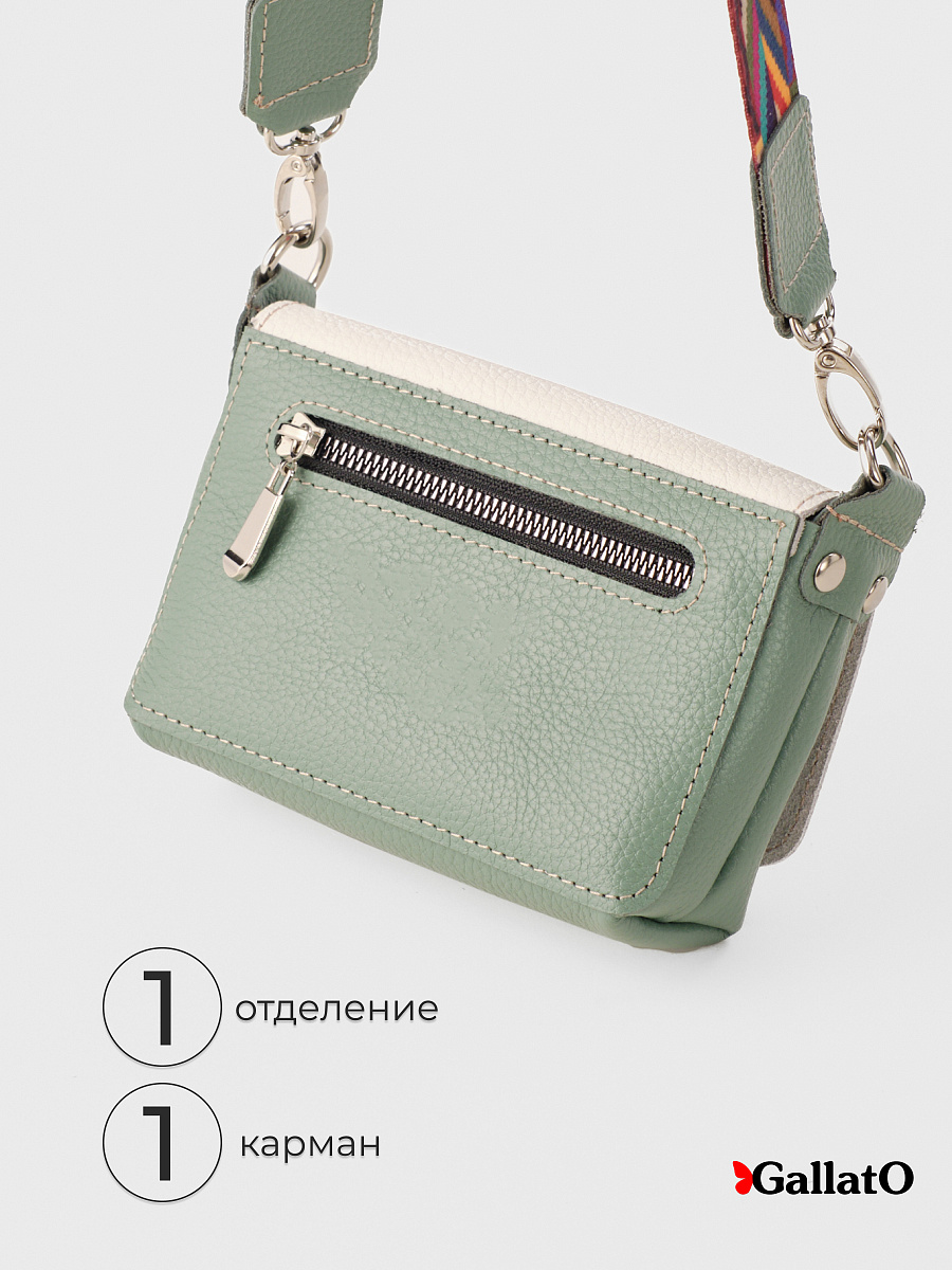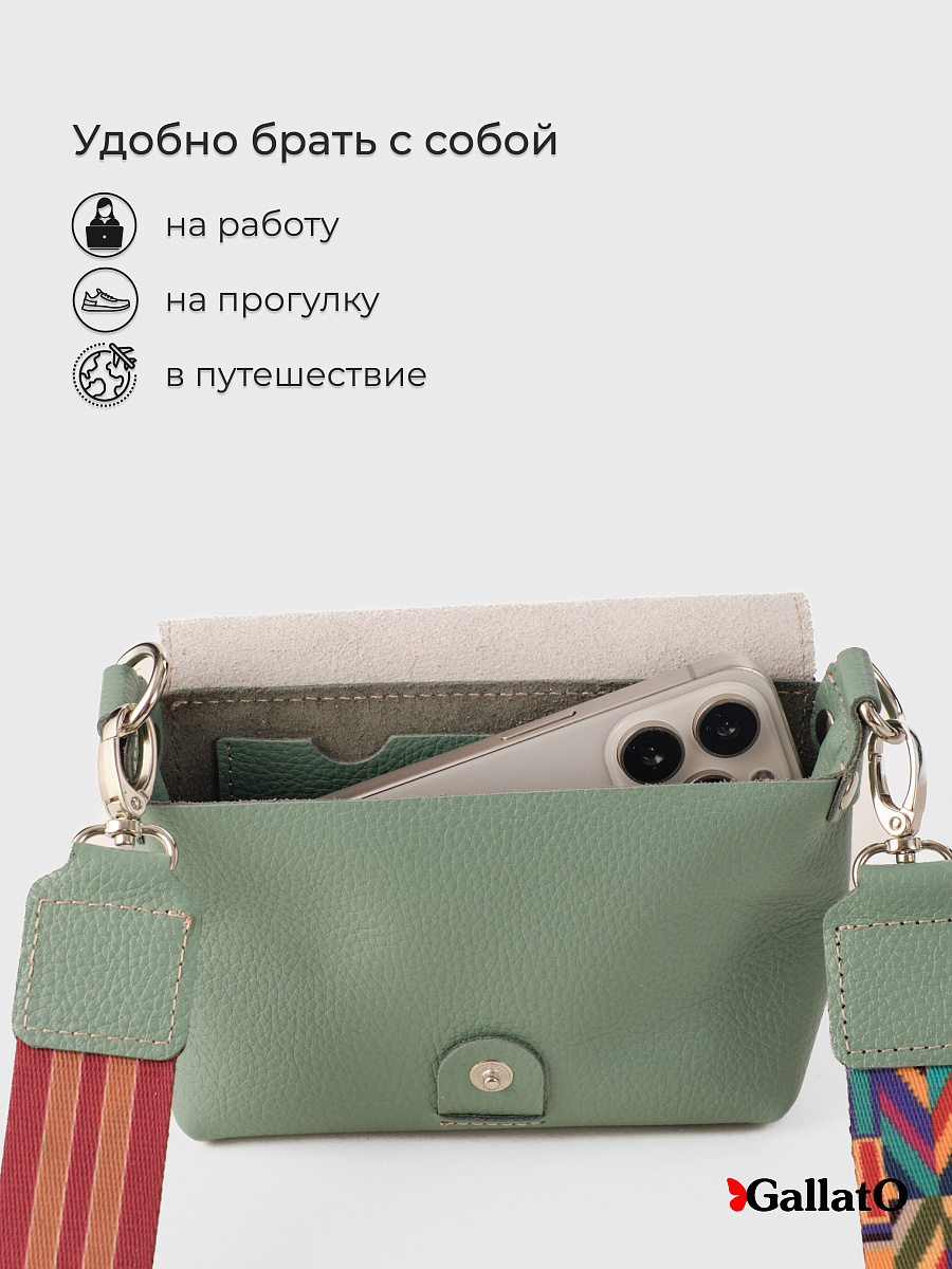 Сумочка, кросс-боди изготовлена из натуральной кожи КРС флоттер, закрывается на кнопку. Внутри одно отделение и два  кармашка для визиток. Снаружи карман закрывается на молнию. Эргономичный аксессуар для путешествий, прогулок в котором удобно носить личные вещи, телефон, ключи, салфетки. Незаменимая вещь при перелетах для хранения дорожных документов. В комплекте регулируемый ремень из цветной стропы длинною 140 см.