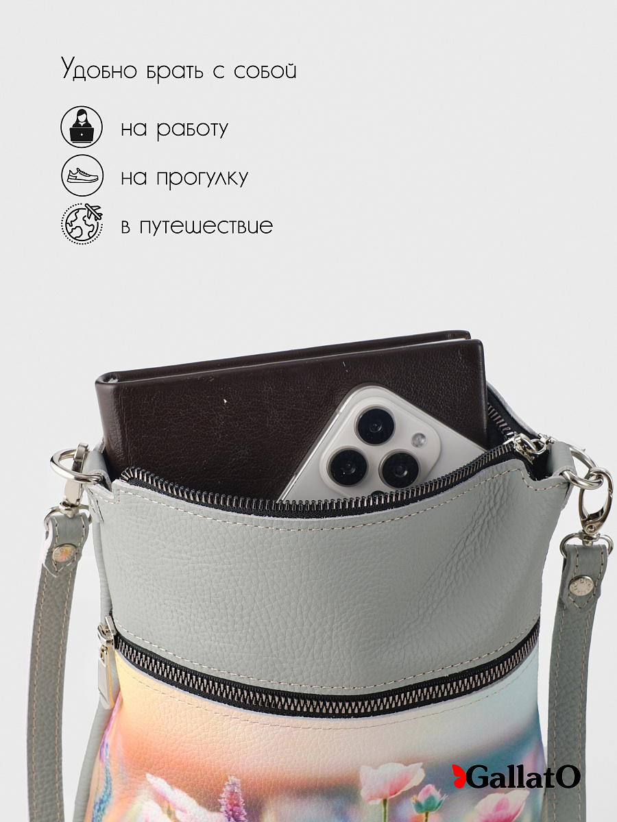 Женская сумка из натуральной кожи - воплощение изысканности и практичности! Стильная и элегантная, идеально подчеркнет ваш образ. Мягкая кожа приятна на ощупь и создает комфортное ношение. Яркий принт добавит нотку индивидуальности и художественного шика. Компактный размер - идеальна для повседневных дел и прогулок. Вместительная - вместит все необходимые вещи. Наружный карман для удобного доступа к мелочам. Внутренний карман, закрывающийся на молнию. Качественная фурнитура - гарантия долговечности. Премиум-качество - наслаждайтесь безупречным стилем.