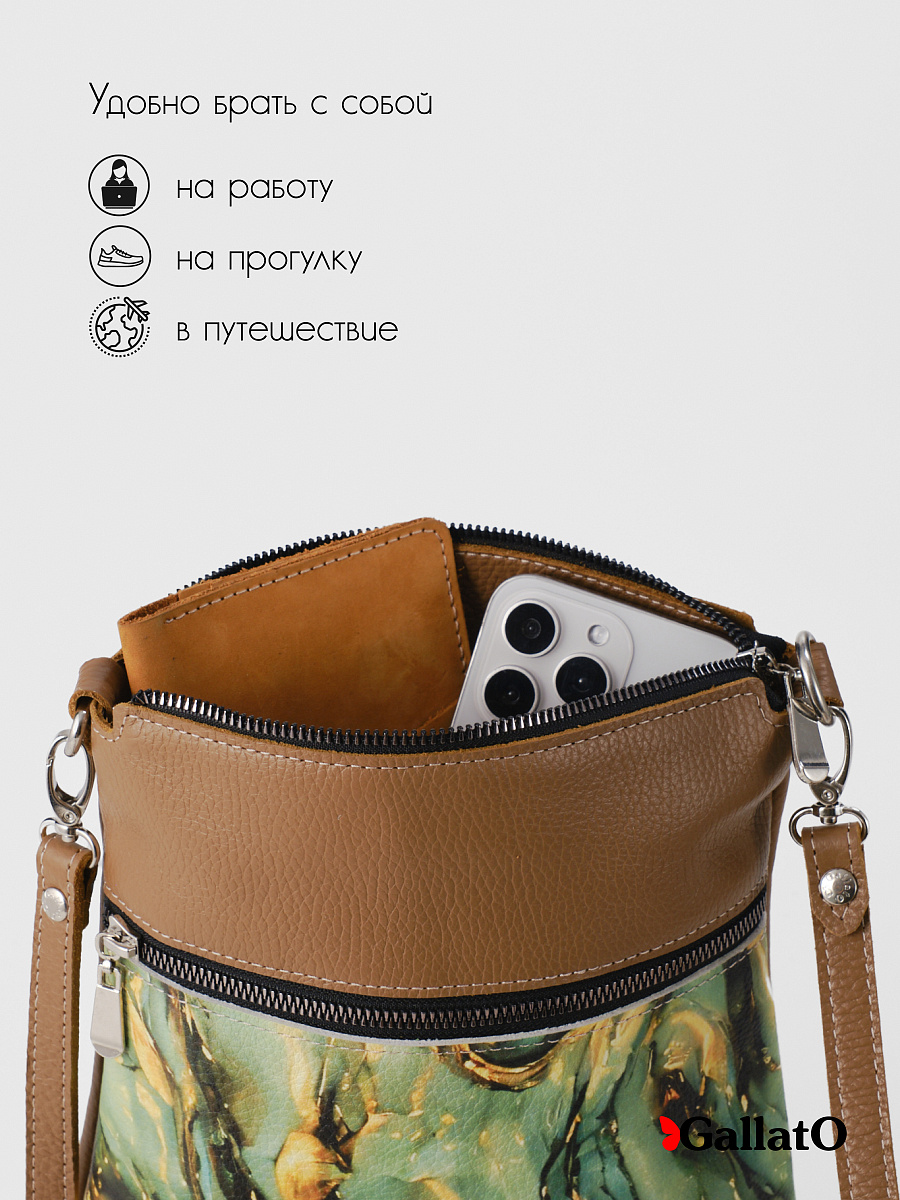 Женская сумка из натуральной кожи - воплощение изысканности и практичности! Стильная и элегантная, идеально подчеркнет ваш образ. Мягкая кожа приятна на ощупь и создает комфортное ношение. Яркий принт добавит нотку индивидуальности и художественного шика. Компактный размер - идеальна для повседневных дел и прогулок. Вместительная - вместит все необходимые вещи. Наружный карман для удобного доступа к мелочам. Внутренний карман, закрывающийся на молнию. Качественная фурнитура - гарантия долговечности. Премиум-качество - наслаждайтесь безупречным стилем.