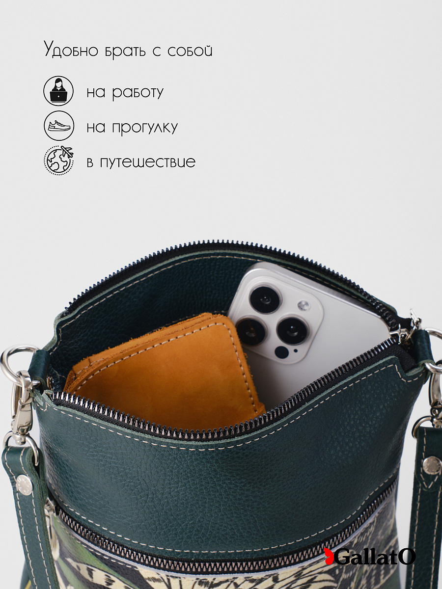 Женская сумка из натуральной кожи - воплощение изысканности и практичности! Стильная и элегантная, идеально подчеркнет ваш образ. Мягкая кожа приятна на ощупь и создает комфортное ношение. Яркий принт добавит нотку индивидуальности и художественного шика. Компактный размер - идеальна для повседневных дел и прогулок. Вместительная - вместит все необходимые вещи. Наружный карман для удобного доступа к мелочам. Внутренний карман, закрывающийся на молнию. Качественная фурнитура - гарантия долговечности. Премиум-качество - наслаждайтесь безупречным стилем.