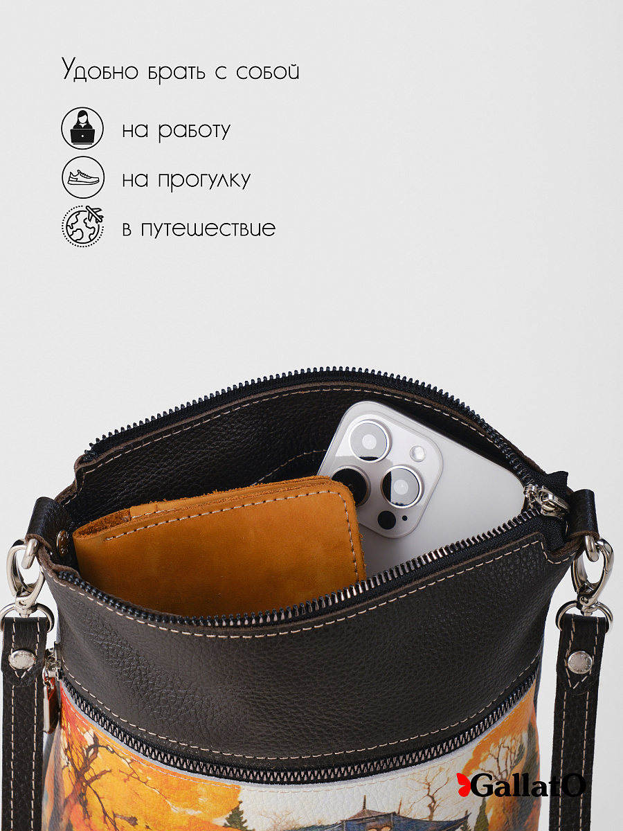 Женская сумка из натуральной кожи - воплощение изысканности и практичности! Стильная и элегантная, идеально подчеркнет ваш образ. Мягкая кожа приятна на ощупь и создает комфортное ношение. Яркий принт добавит нотку индивидуальности и художественного шика. Компактный размер - идеальна для повседневных дел и прогулок. Вместительная - вместит все необходимые вещи. Наружный карман для удобного доступа к мелочам. Внутренний карман, закрывающийся на молнию. Качественная фурнитура - гарантия долговечности. Премиум-качество - наслаждайтесь безупречным стилем.