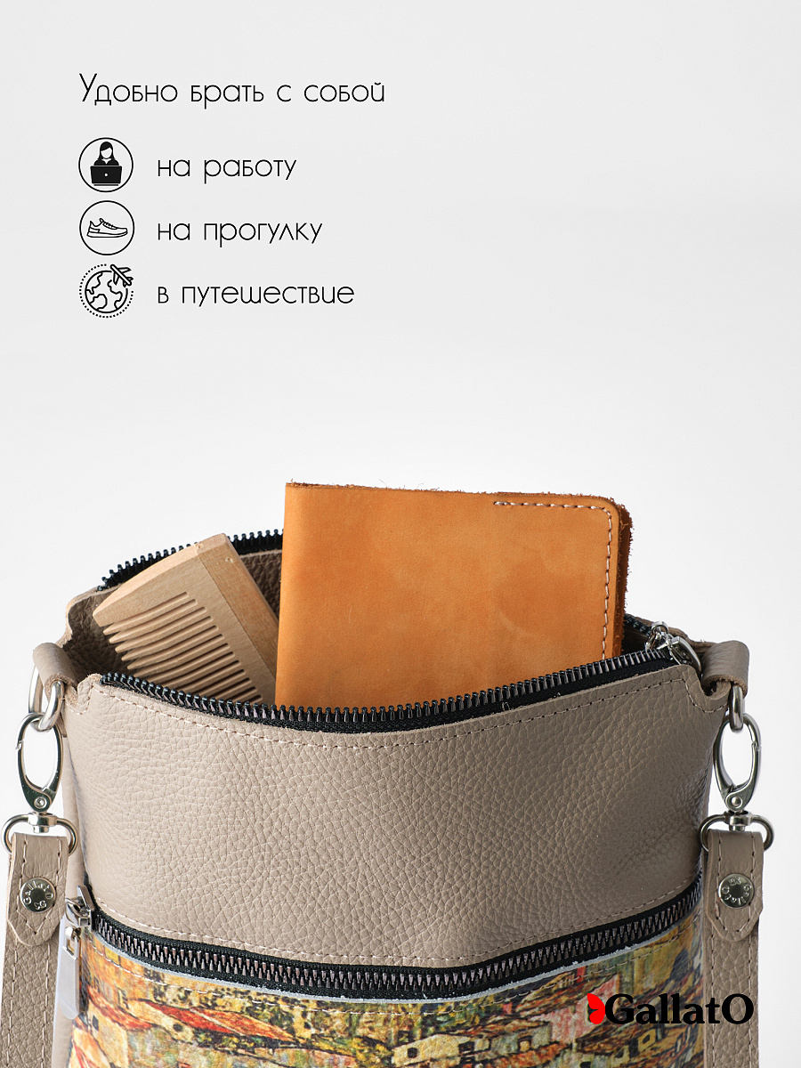 Женская сумка из натуральной кожи - воплощение изысканности и практичности! Стильная и элегантная, идеально подчеркнет ваш образ. Мягкая кожа приятна на ощупь и создает комфортное ношение. Яркий принт добавит нотку индивидуальности и художественного шика. Компактный размер - идеальна для повседневных дел и прогулок. Вместительная - вместит все необходимые вещи. Наружный карман для удобного доступа к мелочам. Внутренний карман, закрывающийся на молнию. Качественная фурнитура - гарантия долговечности. Премиум-качество - наслаждайтесь безупречным стилем.