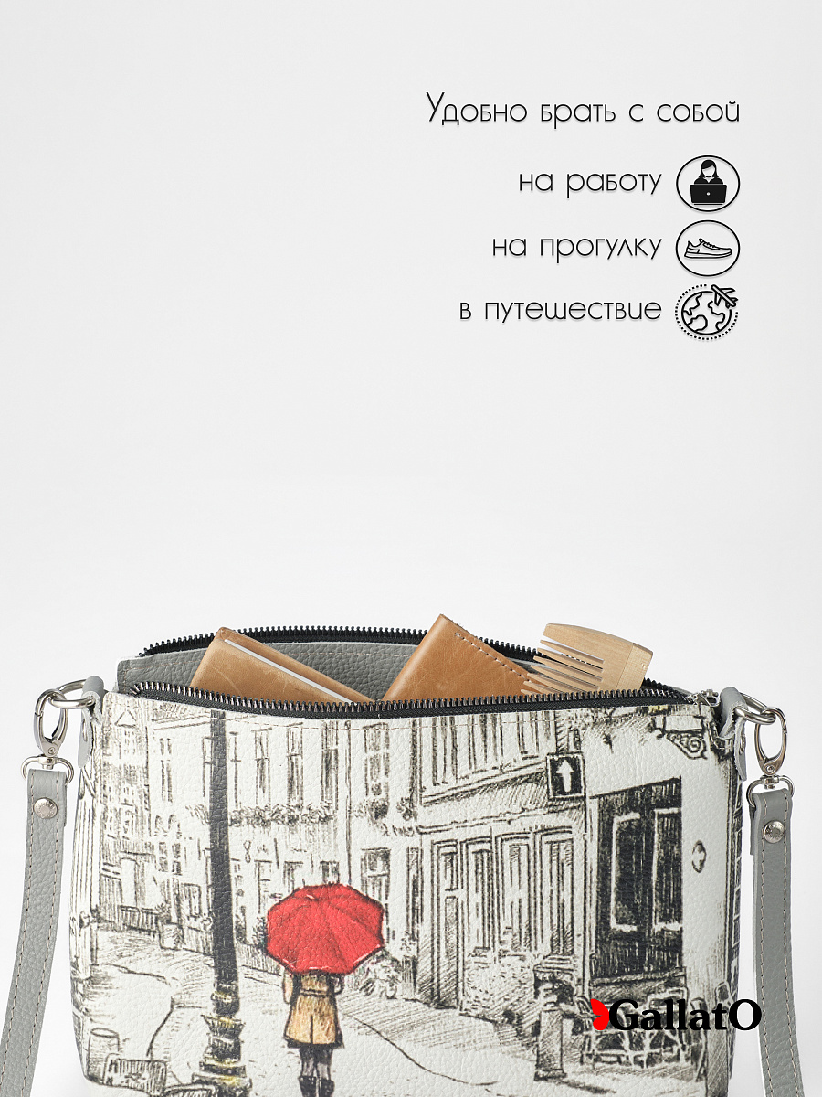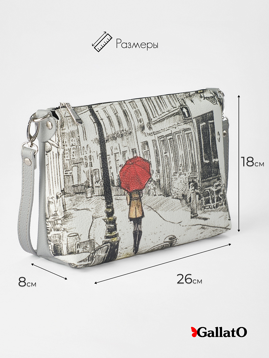 Женская сумка Jane принт Стильная сумка изготовлена из натуральной кожи, сумка закрывается на молнию . Внутри имеется карманы для мелочи и других нужных вещей. Наружный кармин закрывается на молнию Разнообразие цветов кожи позволяют носить сумку с любой одеждой. В комплекте прилагается элегантный плечевой ремешок , который надежно крепится к сумке карабинами, длина ремешка 120 см. Размер: 26*18 * 8 см