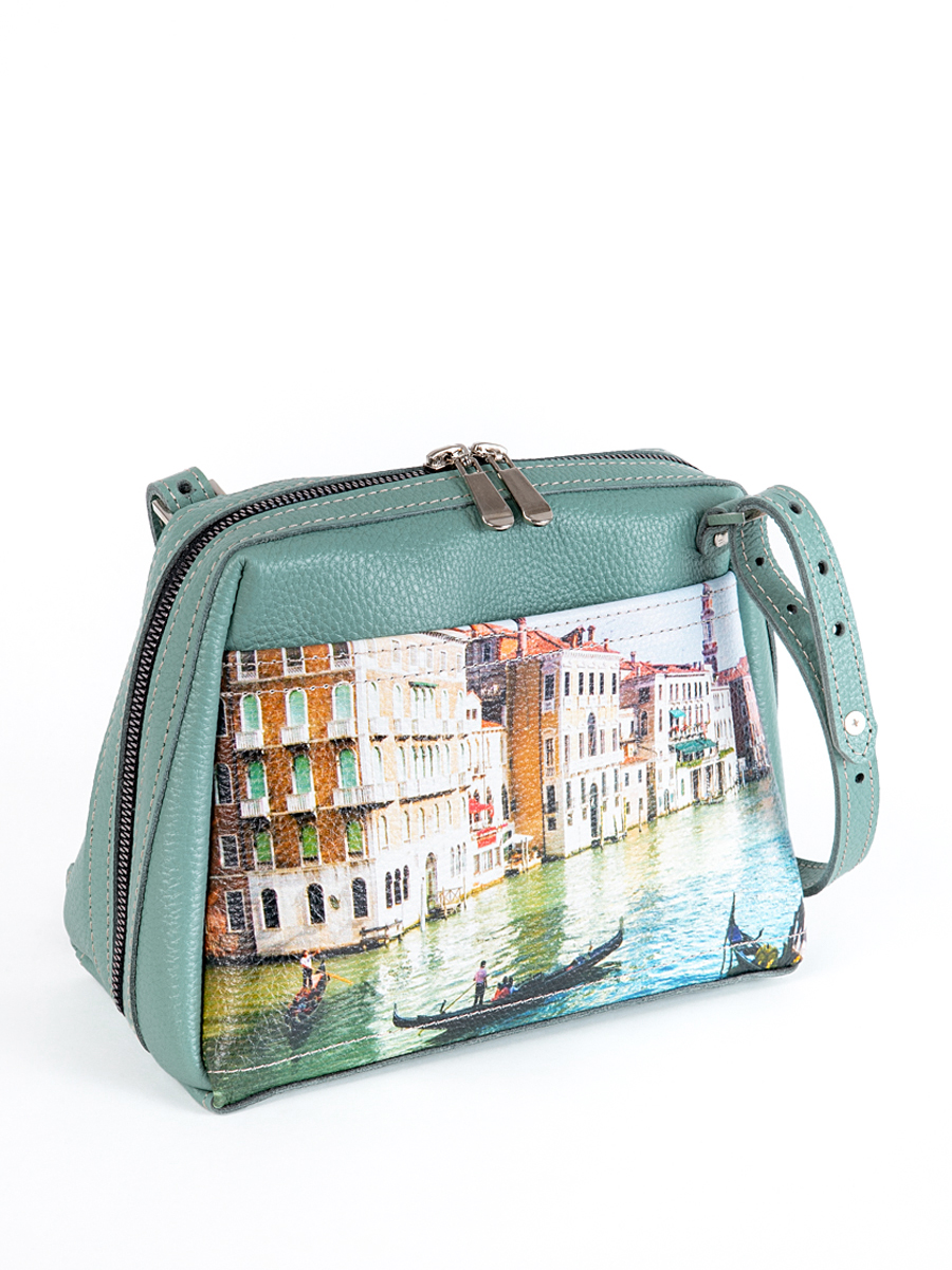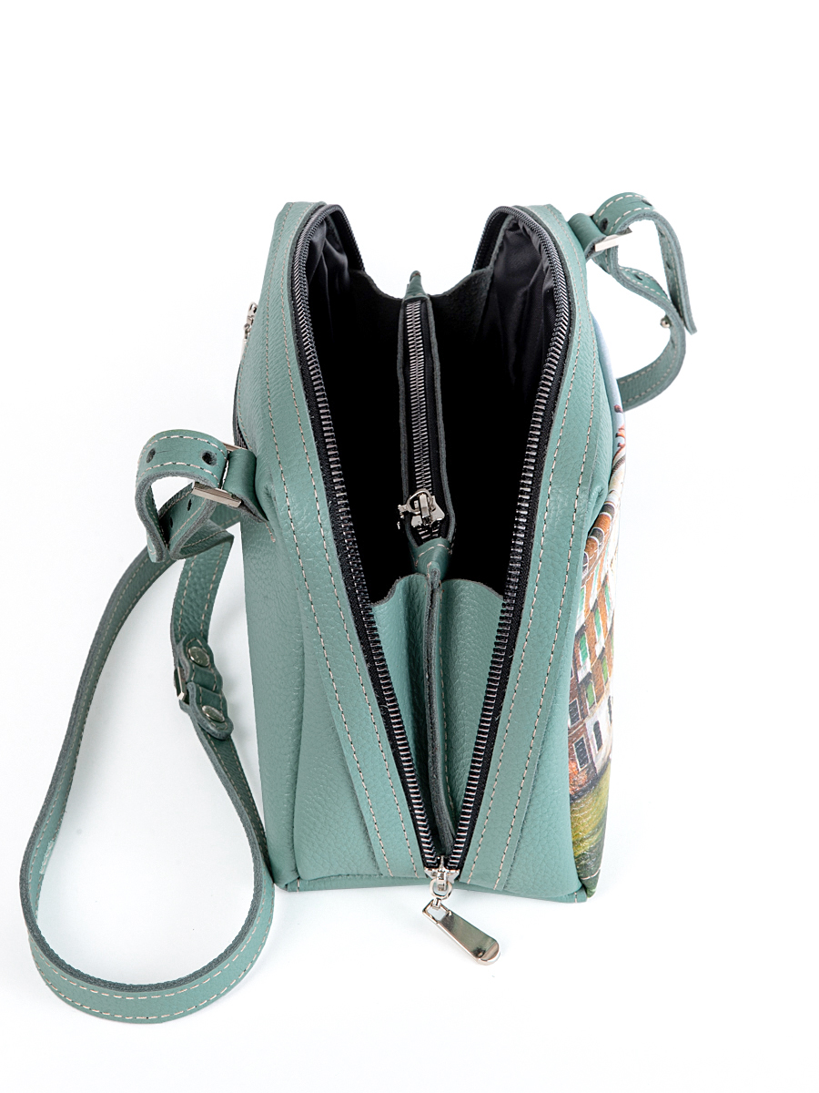 Женская сумка Meri принт. Стильная сумка изготовлена из натуральной кожи, сумка закрывается на молнию . Внутри имеется 3 отделения, одно из них закрывается на молнию, что позволяет использовать его как карман для мелочи и других нужных вещей. Наружный карман закрывается на молнию. Разнообразие цветов кожи позволяют носить сумку с любой одеждой. В комплекте прилагается элегантный плечевой ремешок , который надежно крепится к сумке карабинами, длина ремешка 125 см. Размер: 22 * 17 * 11 см