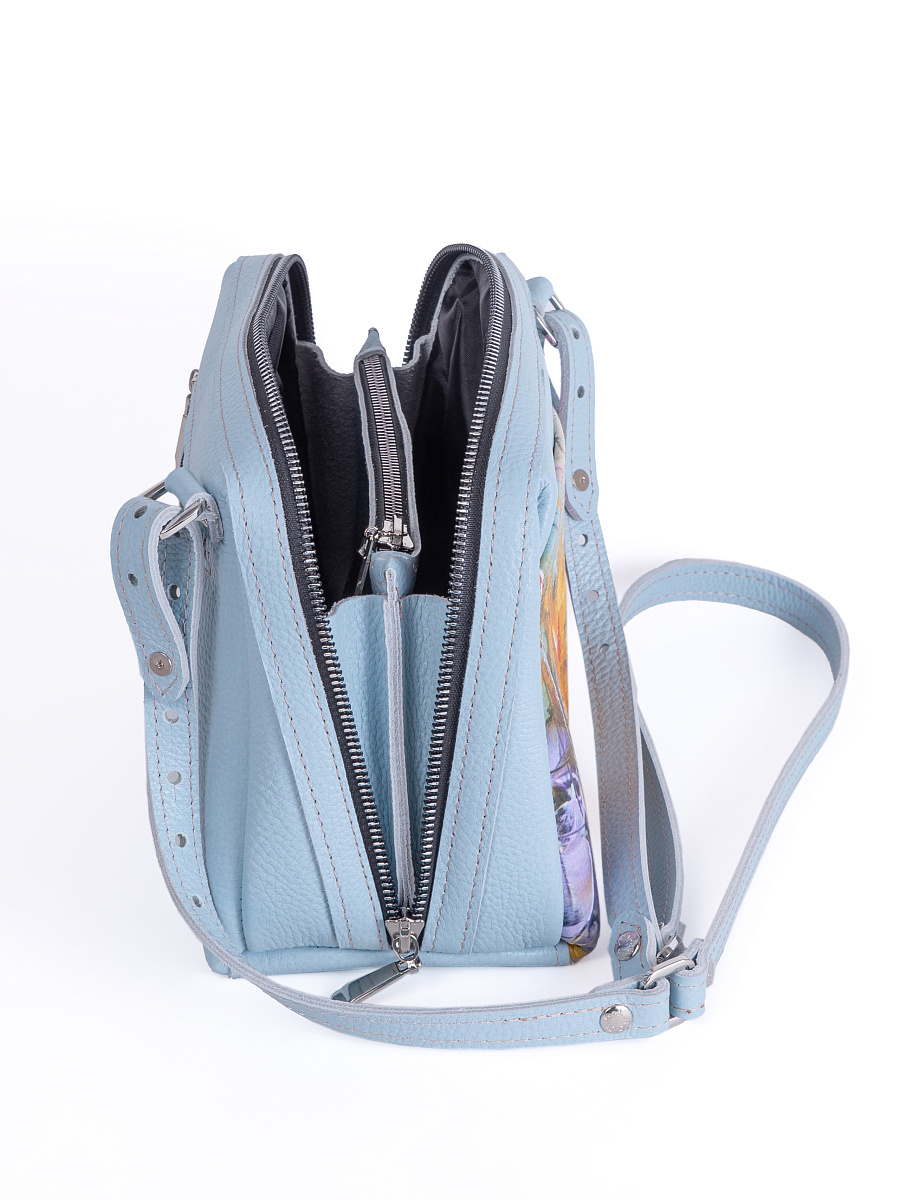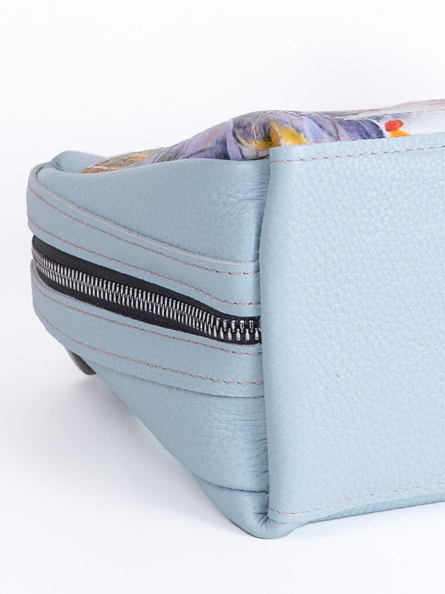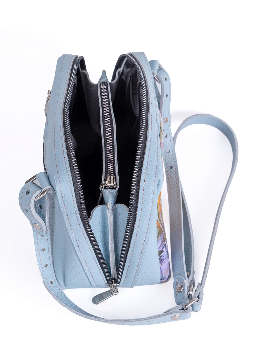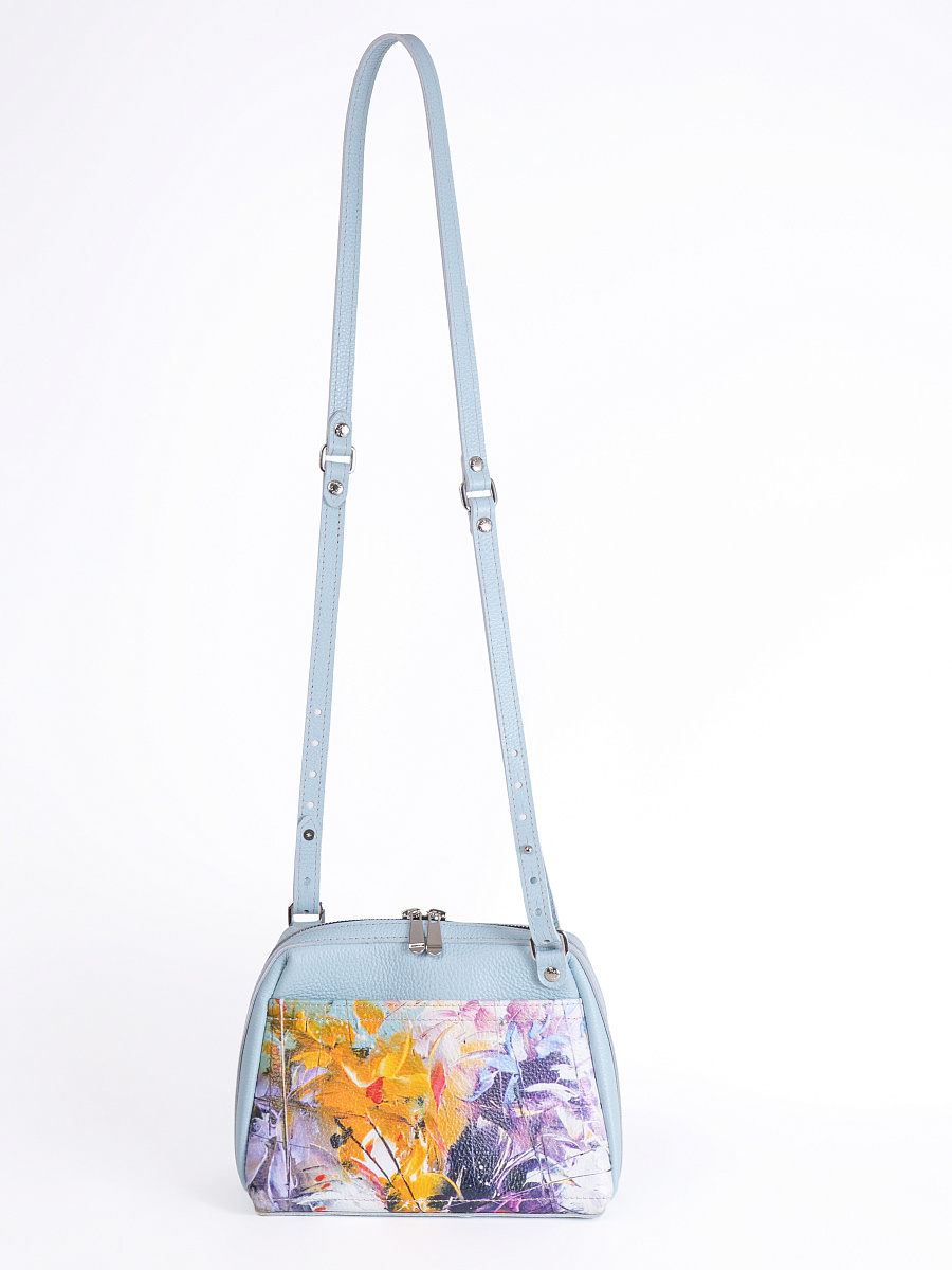 Женская сумка Meri принт. Стильная сумка изготовлена из натуральной кожи, сумка закрывается на молнию . Внутри имеется 3 отделения, одно из них закрывается на молнию, что позволяет использовать его как карман для мелочи и других нужных вещей. Наружный карман закрывается на молнию. Разнообразие цветов кожи позволяют носить сумку с любой одеждой. В комплекте прилагается элегантный плечевой ремешок , который надежно крепится к сумке карабинами, длина ремешка 125 см. Размер: 22 * 17 * 11 см