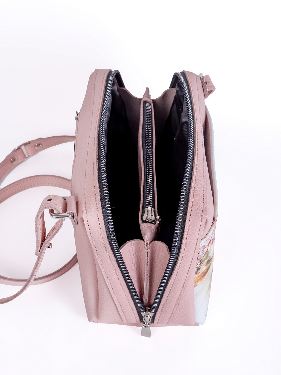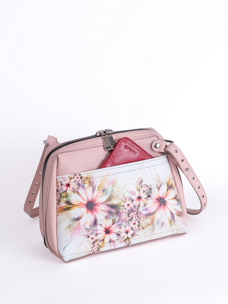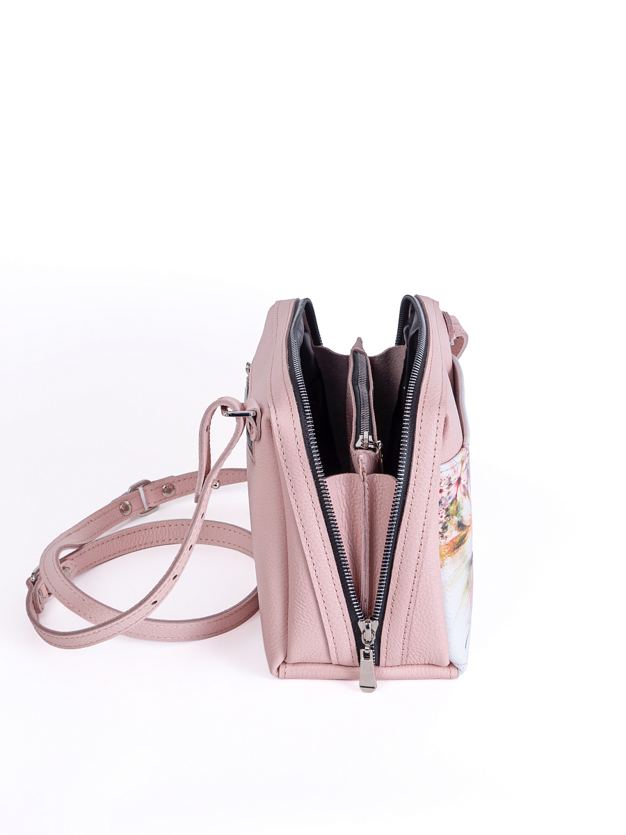 Женская сумка Meri принт. Стильная сумка изготовлена из натуральной кожи, сумка закрывается на молнию . Внутри имеется 3 отделения, одно из них закрывается на молнию, что позволяет использовать его как карман для мелочи и других нужных вещей. Наружный карман закрывается на молнию. Разнообразие цветов кожи позволяют носить сумку с любой одеждой. В комплекте прилагается элегантный плечевой ремешок , который надежно крепится к сумке карабинами, длина ремешка 125 см. Размер: 22 * 17 * 11 см