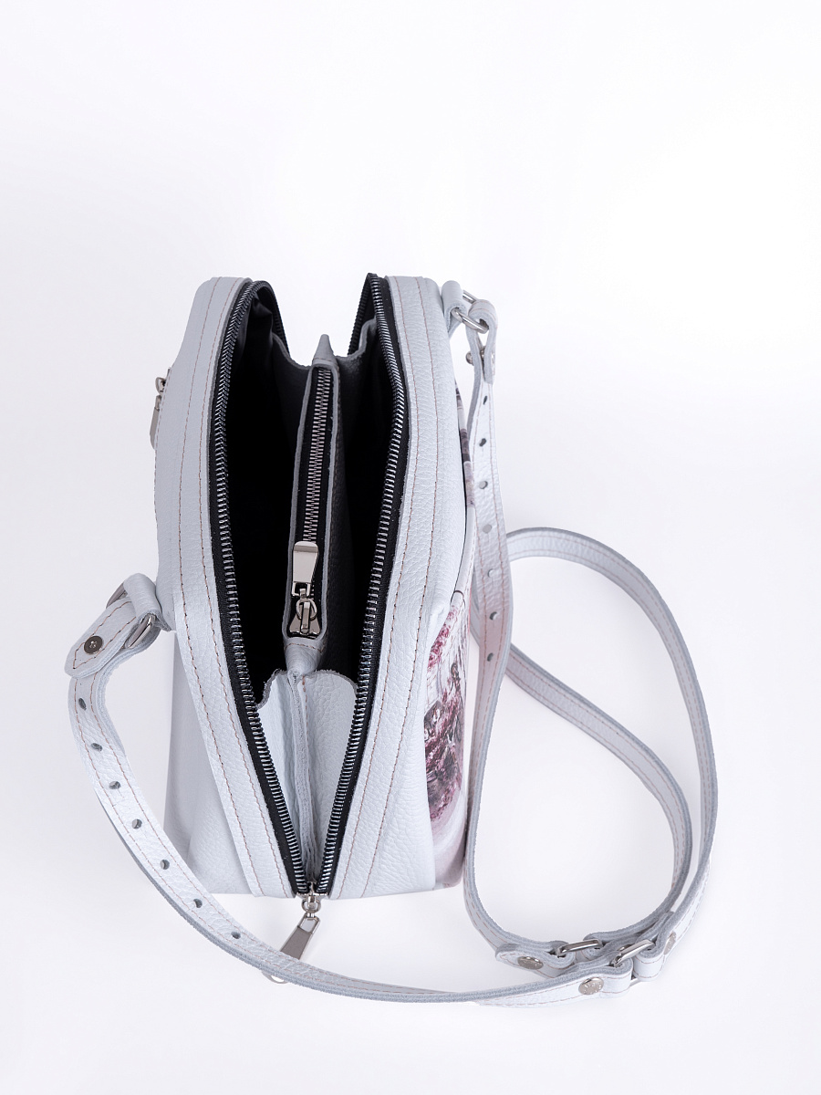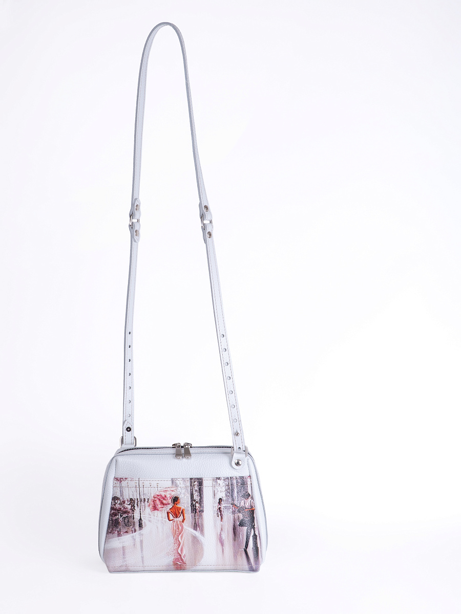 Женская сумка Meri принт. Стильная сумка изготовлена из натуральной кожи, сумка закрывается на молнию . Внутри имеется 3 отделения, одно из них закрывается на молнию, что позволяет использовать его как карман для мелочи и других нужных вещей. Наружный карман закрывается на молнию. Разнообразие цветов кожи позволяют носить сумку с любой одеждой. В комплекте прилагается элегантный плечевой ремешок , который надежно крепится к сумке карабинами, длина ремешка 125 см. Размер: 22 * 17 * 11 см