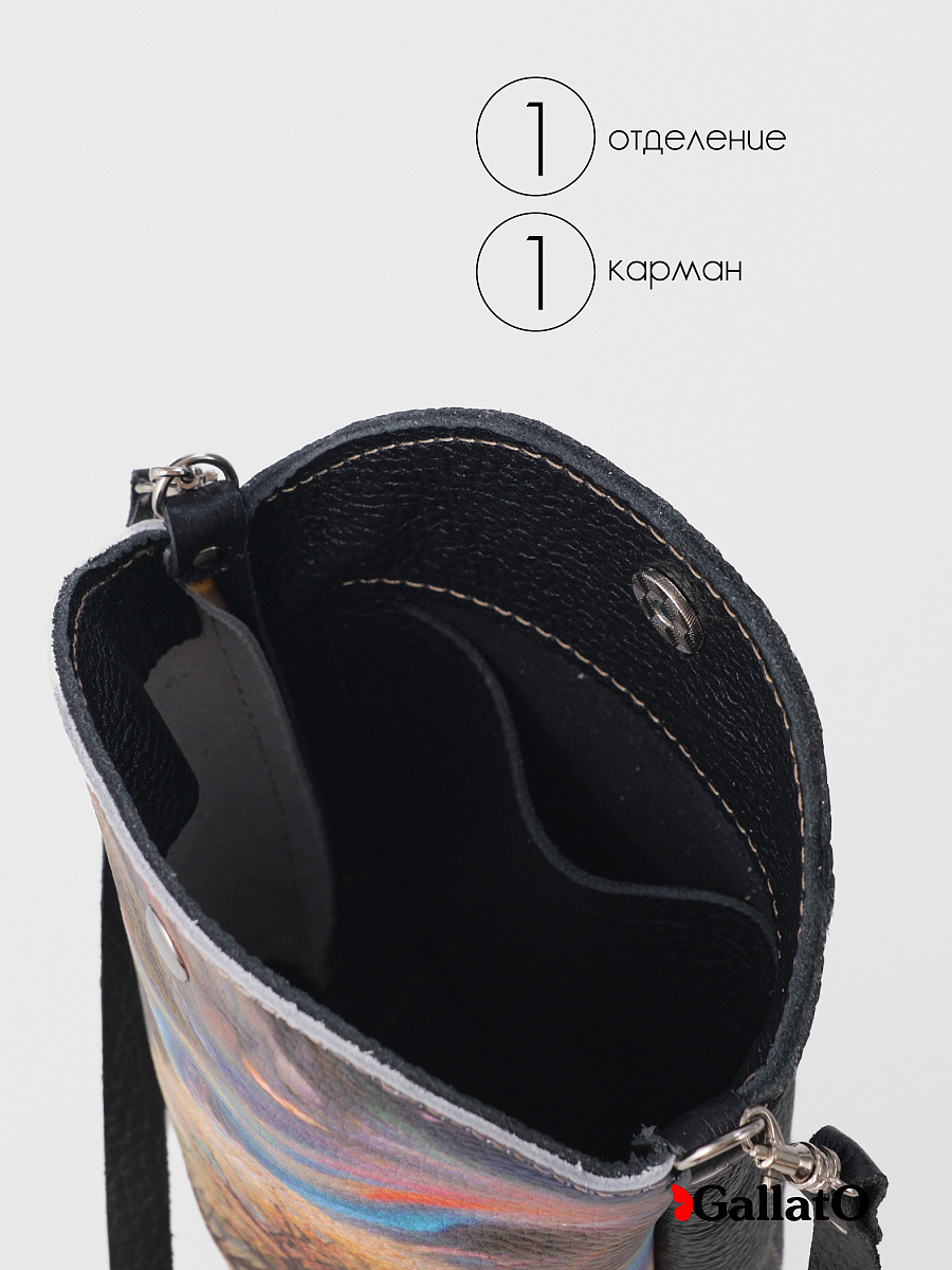 Элегантная сумка из натуральной кожи с модными принтами станет универсальным дополнением вашего образа. Модель закрывается на удобную магнитную кнопку, внутри есть практичный карман для мелочей. Декоративный контрастный шов придает изделию особый шарм. В комплекте – съемный плечевой ремень (120 см) с карабинами для комфортной носки.