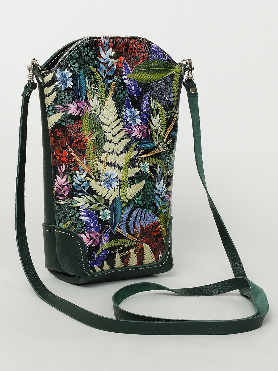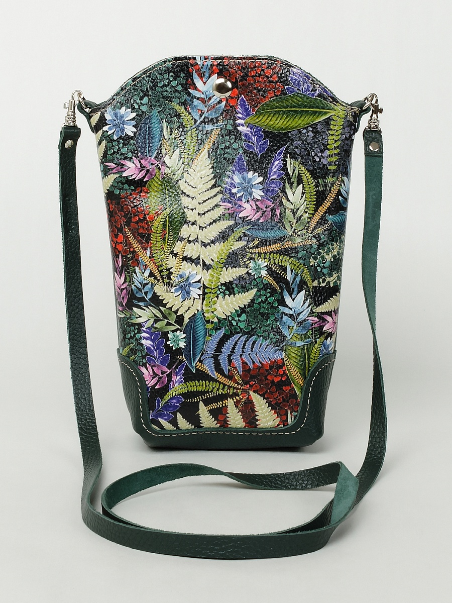 Элегантная сумка из натуральной кожи с модными принтами станет универсальным дополнением вашего образа. Модель закрывается на удобную магнитную кнопку, внутри есть практичный карман для мелочей. Декоративный контрастный шов придает изделию особый шарм. В комплекте – съемный плечевой ремень (120 см) с карабинами для комфортной носки.