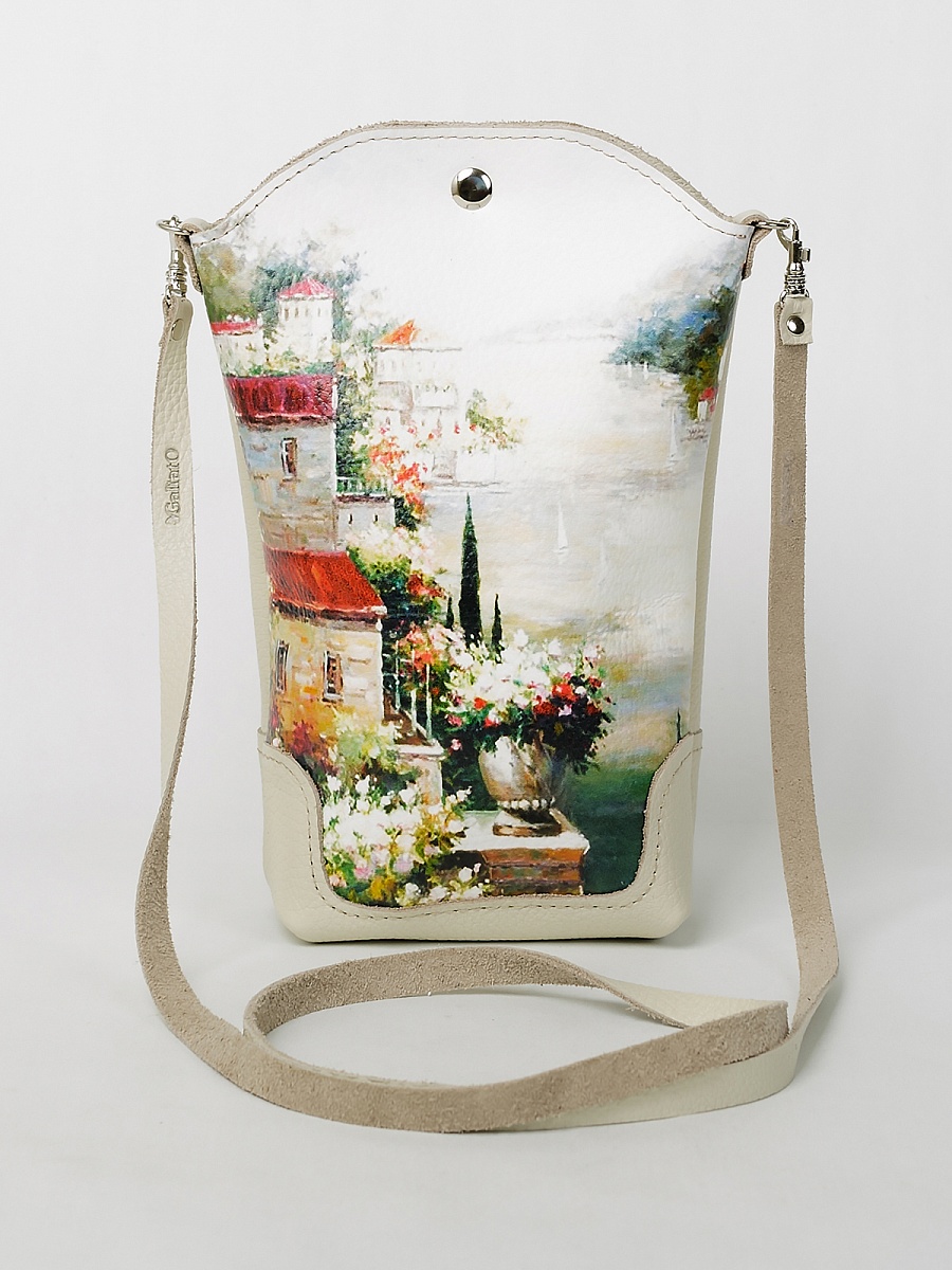 Элегантная сумка из натуральной кожи с модными принтами станет универсальным дополнением вашего образа. Модель закрывается на удобную магнитную кнопку, внутри есть практичный карман для мелочей. Декоративный контрастный шов придает изделию особый шарм. В комплекте – съемный плечевой ремень (120 см) с карабинами для комфортной носки.