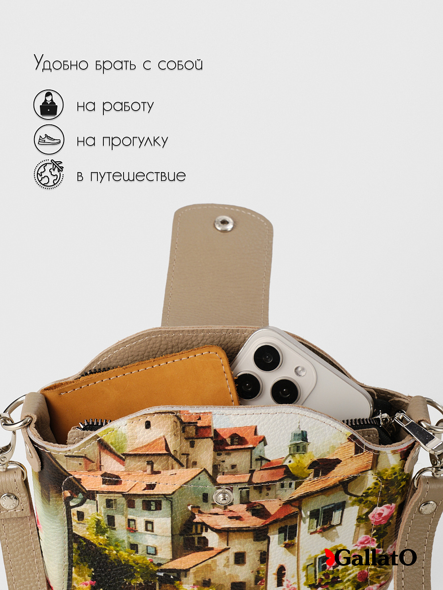 Стильная сумка MILLA принт. Изготовлена из натуральной кожи, сумка закрывается на молнию и фиксируется кнопкой. Внутри имеется карман. Наружный кармин закрывается на молнию Разнообразие цветов кожи и принтов, позволяют носить сумку с любой одеждой. В комплекте прилагается элегантный плечевой ремешок , который надежно крепится к чехлу карабинами, длина ремешка 120 см. Размер: 16 * 6 * 20 см.