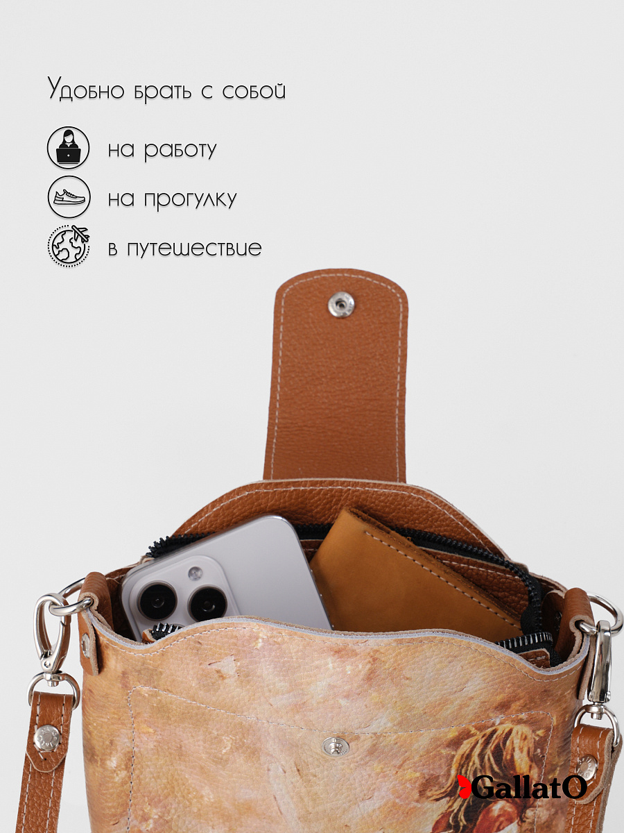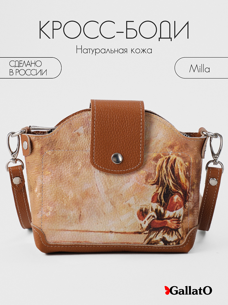 Стильная сумка MILLA принт. Изготовлена из натуральной кожи, сумка закрывается на молнию и фиксируется кнопкой. Внутри имеется карман. Наружный кармин закрывается на молнию Разнообразие цветов кожи и принтов, позволяют носить сумку с любой одеждой. В комплекте прилагается элегантный плечевой ремешок , который надежно крепится к чехлу карабинами, длина ремешка 120 см. Размер: 16 * 6 * 20 см.