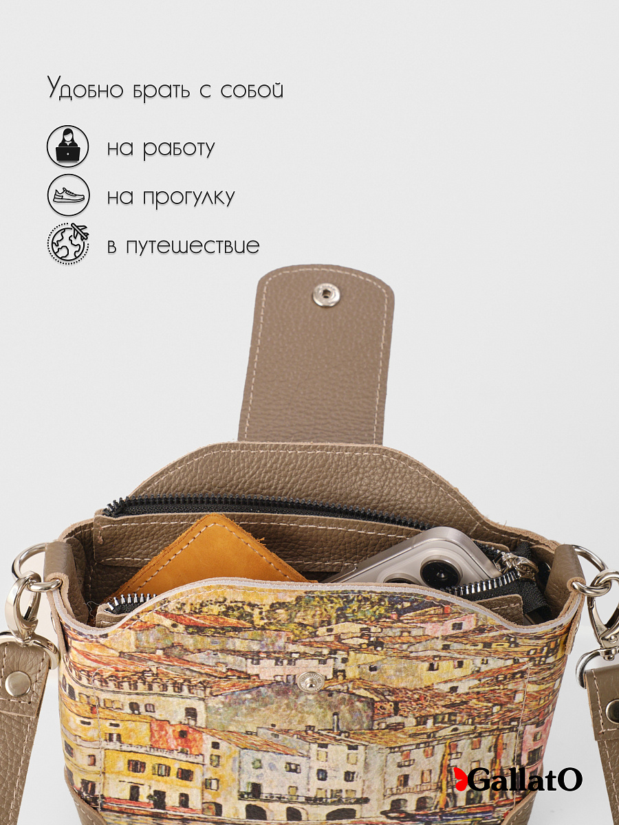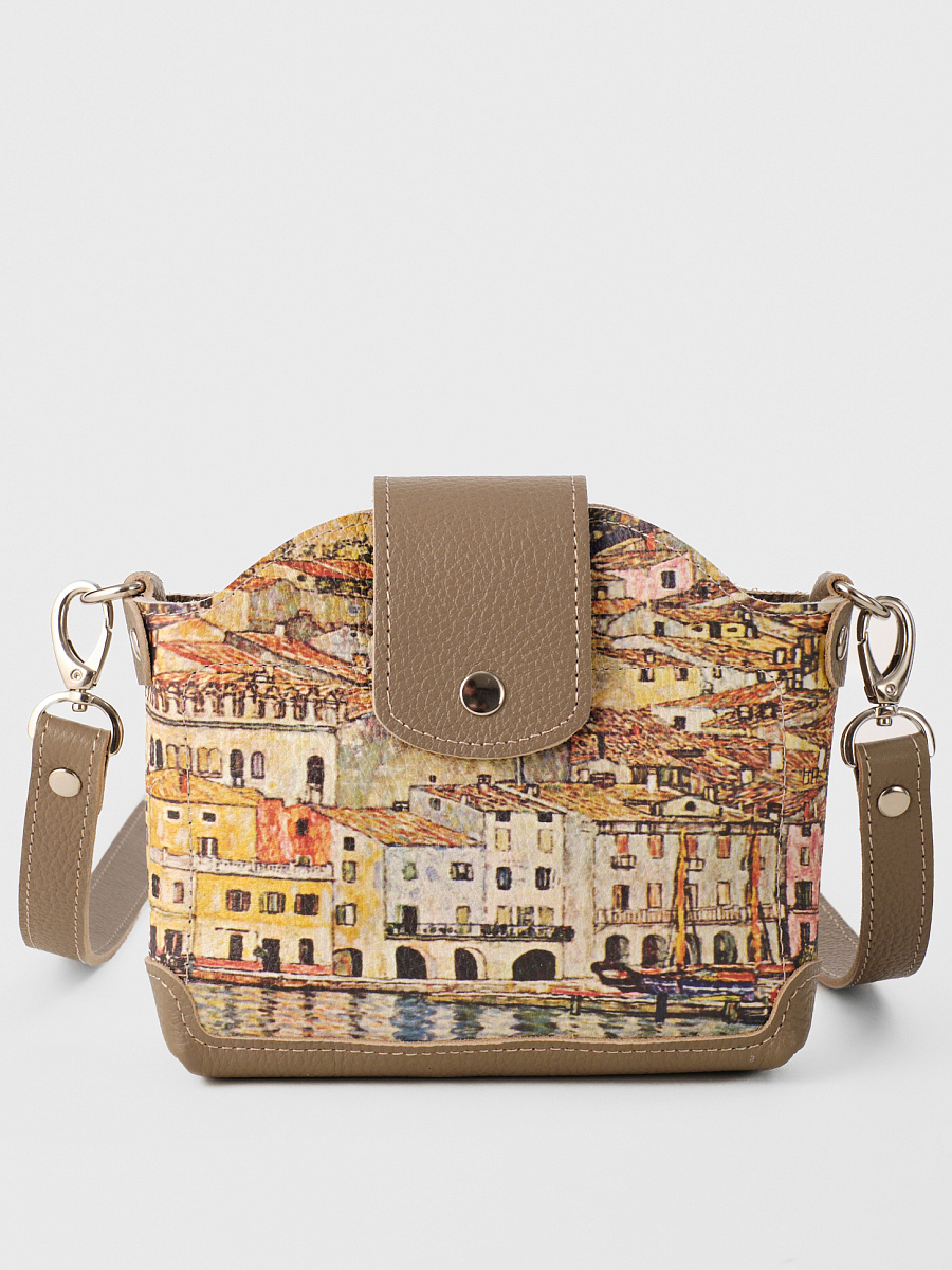 Стильная сумка MILLA принт. Изготовлена из натуральной кожи, сумка закрывается на молнию и фиксируется кнопкой. Внутри имеется карман. Наружный кармин закрывается на молнию Разнообразие цветов кожи и принтов, позволяют носить сумку с любой одеждой. В комплекте прилагается элегантный плечевой ремешок , который надежно крепится к чехлу карабинами, длина ремешка 120 см. Размер: 16 * 6 * 20 см.
