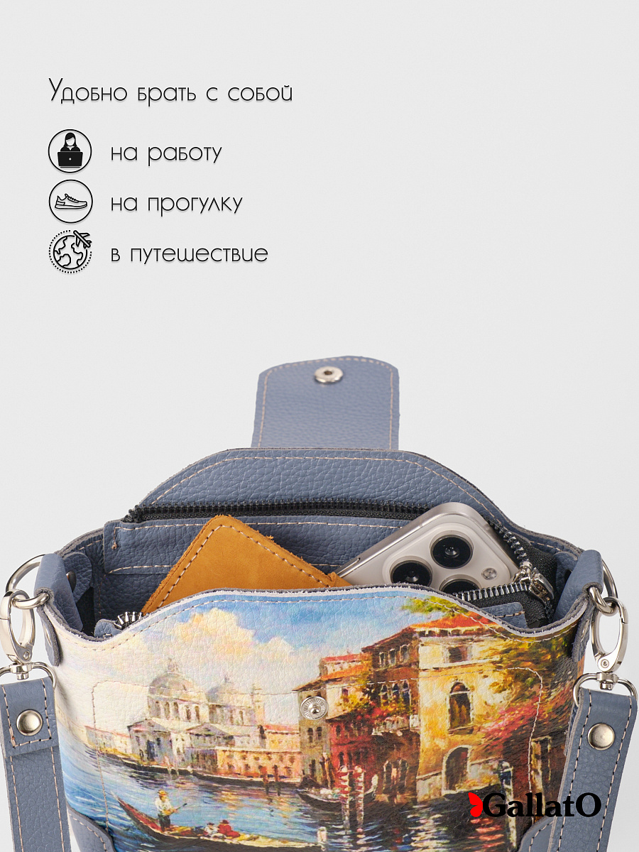Стильная сумка MILLA принт. Изготовлена из натуральной кожи, сумка закрывается на молнию и фиксируется кнопкой. Внутри имеется карман. Наружный кармин закрывается на молнию Разнообразие цветов кожи и принтов, позволяют носить сумку с любой одеждой. В комплекте прилагается элегантный плечевой ремешок , который надежно крепится к чехлу карабинами, длина ремешка 120 см. Размер: 16 * 6 * 20 см.